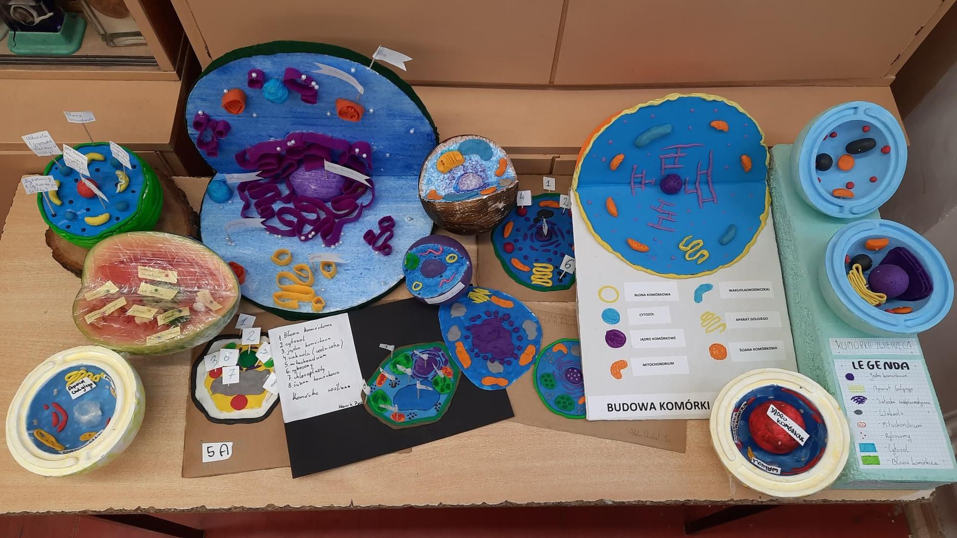 Aby lepiej poznać budowę komórek biologicznych, uczniowie klas piątych przygotowali model dowolnej komórki biologicznej. Do wyboru mieli komórkę zwierzęcą, roślinną, grzyba lub bakterii. Dzięki wykonaniu formy przestrzennej łatwiej zapamiętać elementy budowy komórki oraz funkcji poszczególnych części składowych. Pojawiły się komórki wykonane z plasteliny lub z kul styropianowych. Była też komórka „jadalna” z arbuza. Bardzo dziękuję za kreatywnie wykonane prace.
