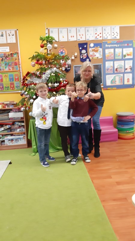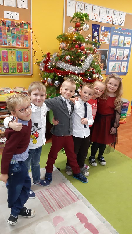 Jedną z najprzyjemniejszych dla dzieci tradycji jest na pewno ubieranie choinki. W tym roku dzieci z zerówek otrzymały świąteczne drzewka od Nadleśnictwa Ośno Lubuskie. W ubieranie drzewek zaangażowani byli wszyscy uczniowie. Na klasowych choinkach zawisły własnoręcznie robione przez dzieci bombki i kolorowe łańcuchy. Nie zabrakło też bombek, którymi obdarowali nas rodzice.