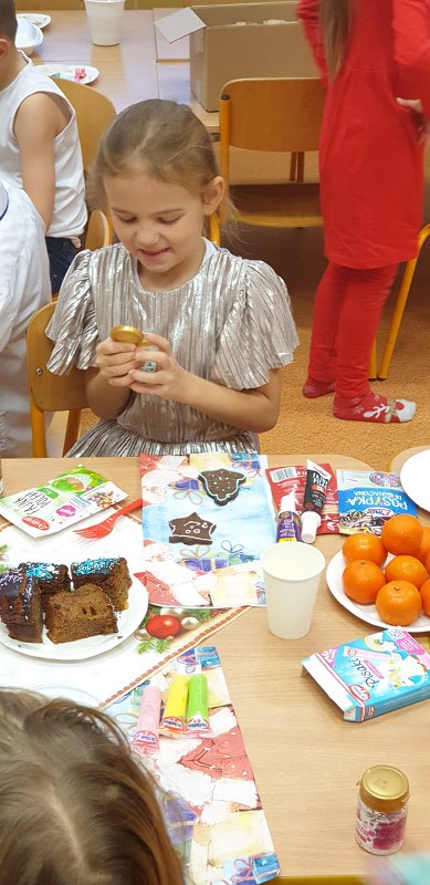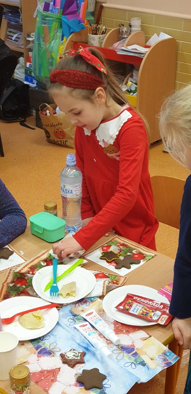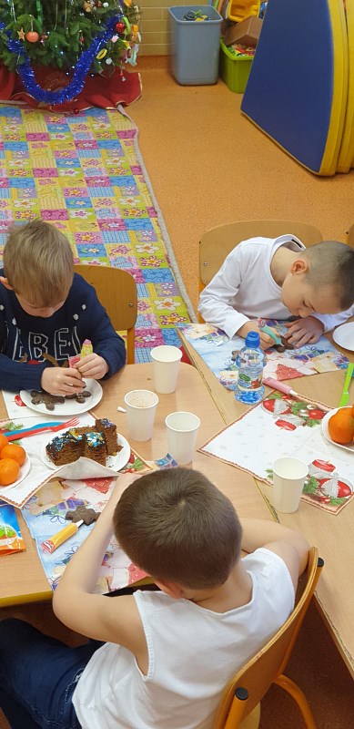 Inną bożonarodzeniową tradycją jest ozdabianie pierniczków. I tutaj nasze maluchy też się spisały. Pierniczki wyglądały pięknie, kolorowo, pachniały cynamonem i znakomicie smakowały.