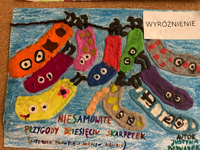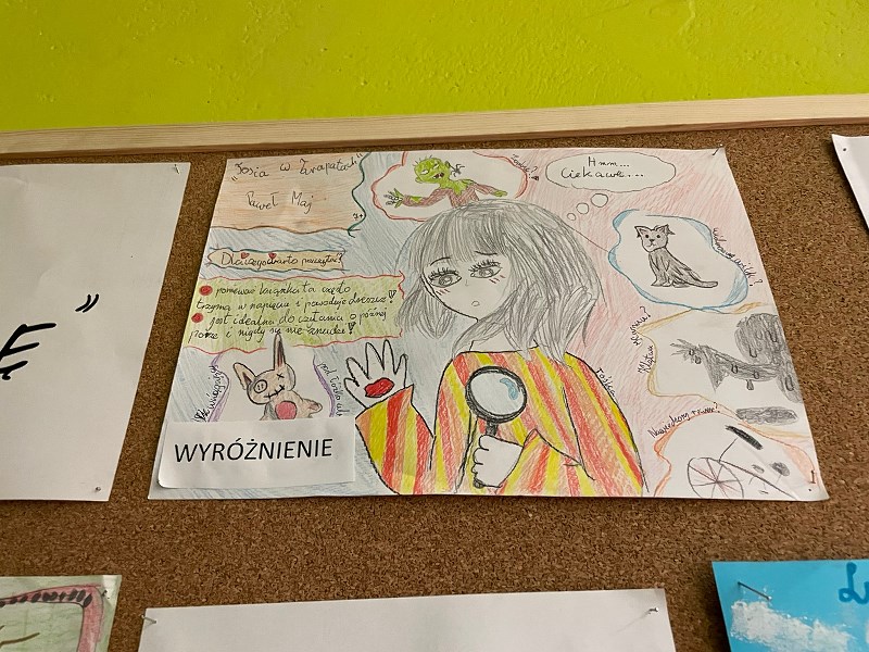 W GRUDNIU SZKOLNA BIBLIOTEKA OGŁOSIŁA KONKURS POLEGAJĄCY NA WYKONANIU ILUSTRACJI KSIĄŻKI, KTÓRĄ MIKOŁAJ MOGŁBY PODAROWAĆ POD CHOINKĘ. UCZNIOWIE CHĘTNIE WZIĘLI W NIM UDZIAŁ I ZGŁOSILI 49 PRAC (WSZYSTKIE MOŻNA OGLĄDAĆ NA WYSTAWIE). NAJAKTYWNIEJSI OKAZALI SIĘ NAJMŁODSI CZŁONKOWIE NASZEJ SZKOLNEJ SPOŁECZNOŚCI, CI, KTÓRZY DOPIERO ZACZYNAJĄ SAMODZIELNIE POZNAWAĆ ŚWIAT LITERATURY, CZYLI DZIECI Z ZERÓWEK ORAZ UCZNIOWIE NAUCZANIA OCZĄTKOWGO. NATOMIAST KLASY IV-VIII (NAJSTARSI MIELI DODATKOWO PISEMNIE UZASADNIĆ WYBÓR) ZAPEWNE TAK BYŁY ZACZYTANE, ŻE NIE MIAŁY CZASU NA PRZYGOTOWANIE PRAC NA KONKURS, WIĘC TYLKO KILKA TRAFIŁO DO BIBLIOTEKI. JURY, W KTÓREGO SKŁADZIE BYLI I NAUCZYCIELE, I PRZEDSTAWICIELE SAMORZĄDU UCZNIOWSKIEGO, MIAŁO TRUDNY ORZECH DO ZGRYZIENIA, GDYŻ WSZYSTKIE PRACE BYŁY NIEZWYKŁE I WYKONANE Z OGROMNYM ZAANGAŻOWANIEM, TOTEŻ WYBRANIE NAJLEPSZYCH NIE BYŁO ŁATWE. W ZWIĄZKU Z TYM KOMISJA ZADECYDOWAŁA, ŻE NIE BĘDZIE WSKAZYWAĆ ZWYCIĘZCÓW, TYLKO PRZYZNA WYRÓŻNIENIA. OTRZYMUJĄ JE (KOLEJNOŚĆ ALFABETYCZNA):