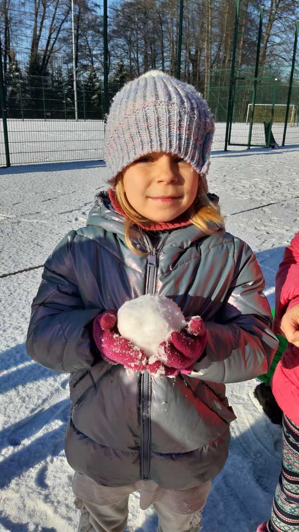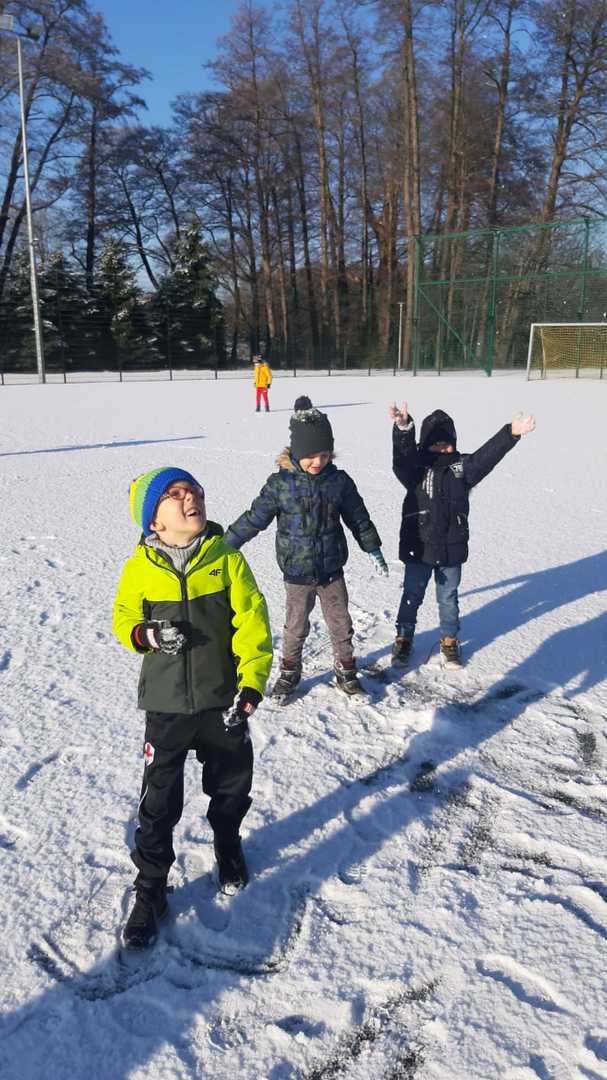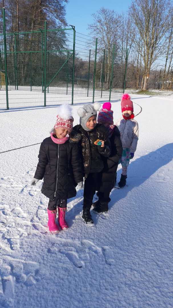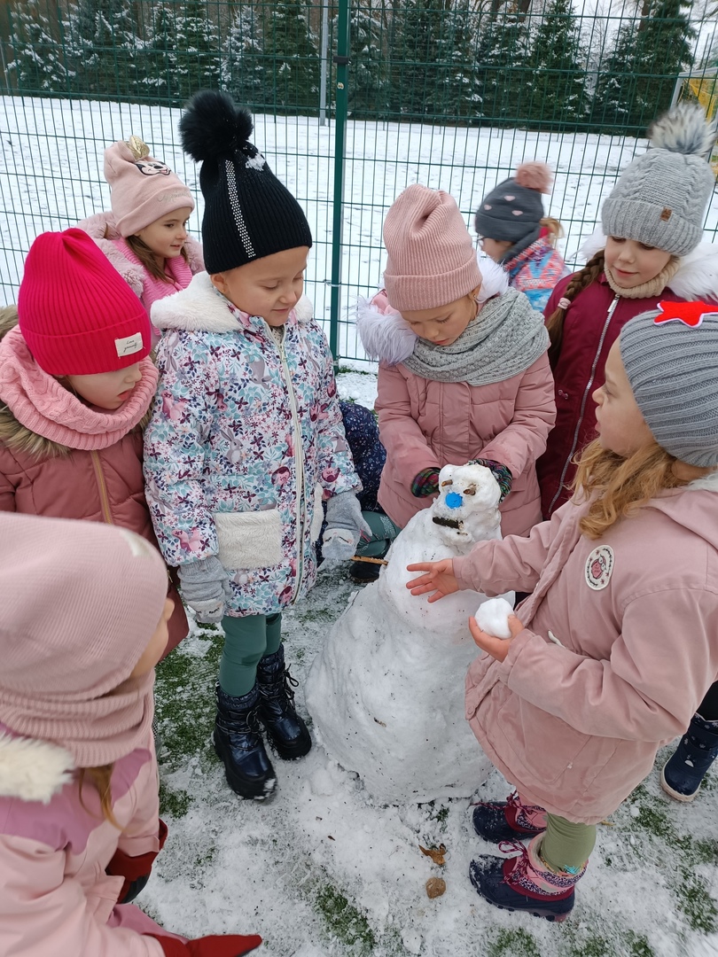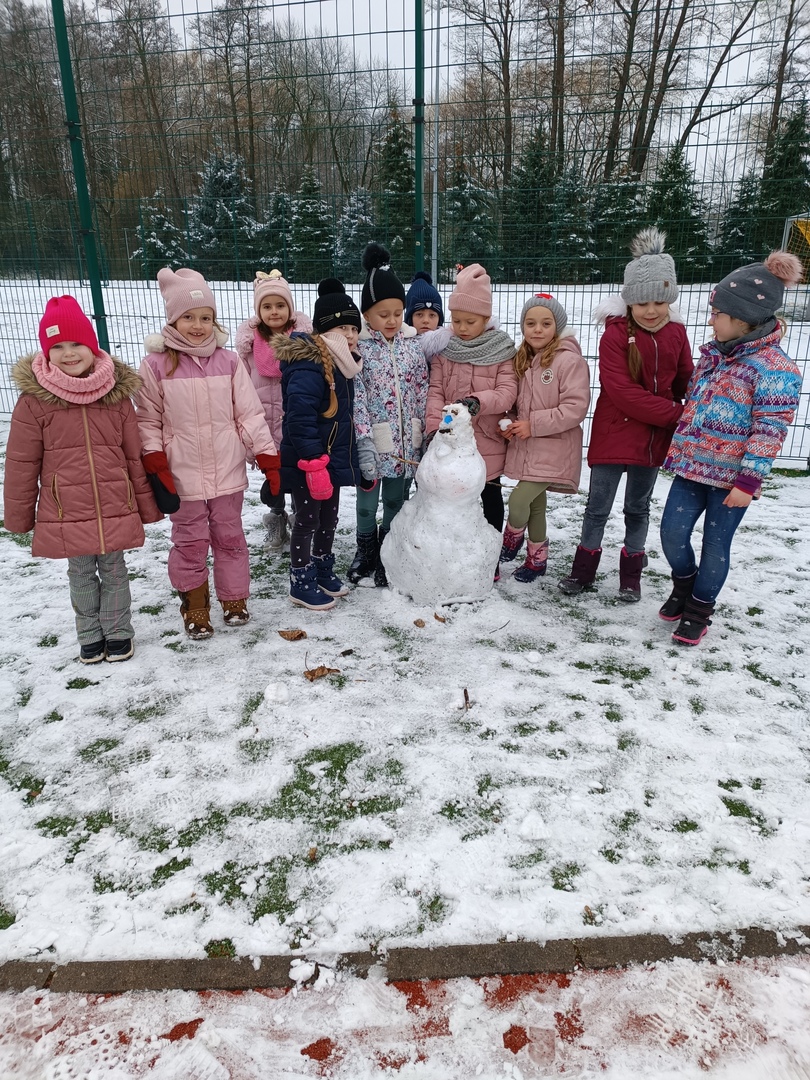 Dzieci wyruszyły na szkolne boisko, aby wspólnie bawić się na świeżym zimowym powietrzu. Radości nie było końca. Dzieci wspólnie zbierały śnieg, toczyły z niego kule, zbierały patyki oraz kamyki. Współpraca układała się nam doskonale. Bałwany wywołały uśmiech na wielu twarzach. Nie ważne jaki bałwan był - czy duży, czy mały - ale był. Bałwan to ciekawy gagatek, o którym warto opowiedzieć dzieciom. Aby wiedziały , że to coś więcej niż trzy kulki śniegu z nosem z marchewki i oczami z bryłek węgla. To najbardziej znany symbol zimy.