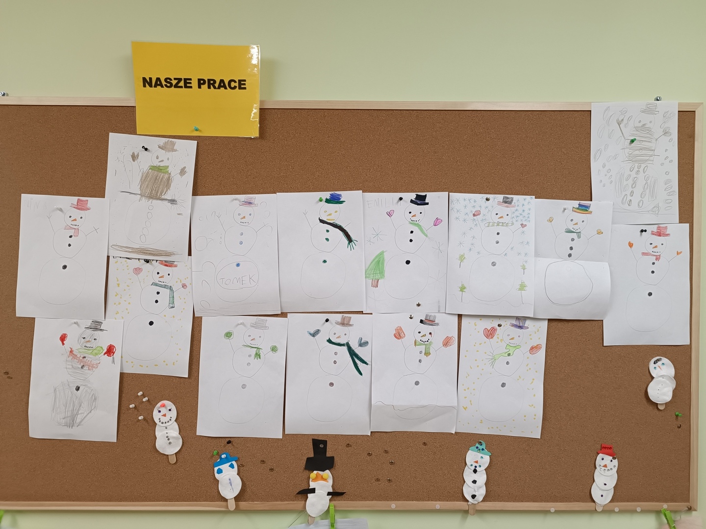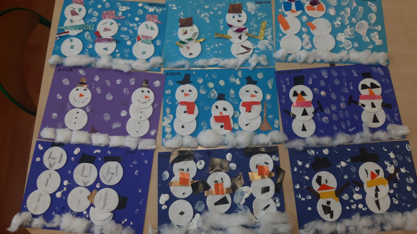 Dzień jak widać minął nam radośnie. Po wesołych i energicznych atrakcjach, przyszedł czas na odpoczynek i wykonanie prac plastycznych. Mamy nadzieję, że nasz bałwanek zostanie z nami na dużej.