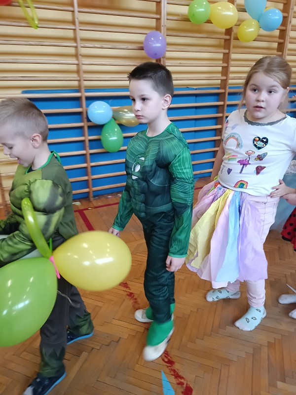 Tak też było w naszej szkole. Wychowawczynie postarały się, aby tego dnia sala gimnastyczna wyglądała nadzwyczajnie. Przystrojona w kolorowe balony, które wprowadziły w nas atmosferę zachęcającą do zabawy.