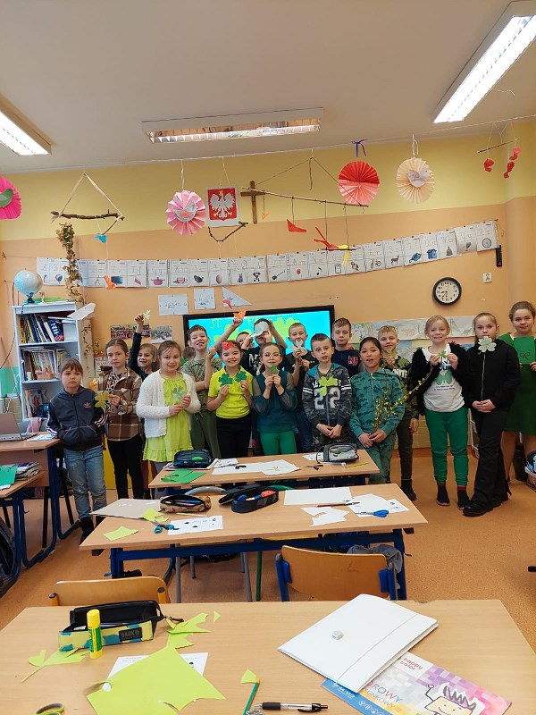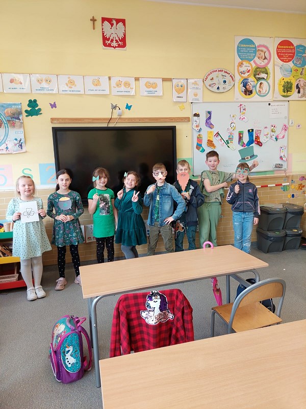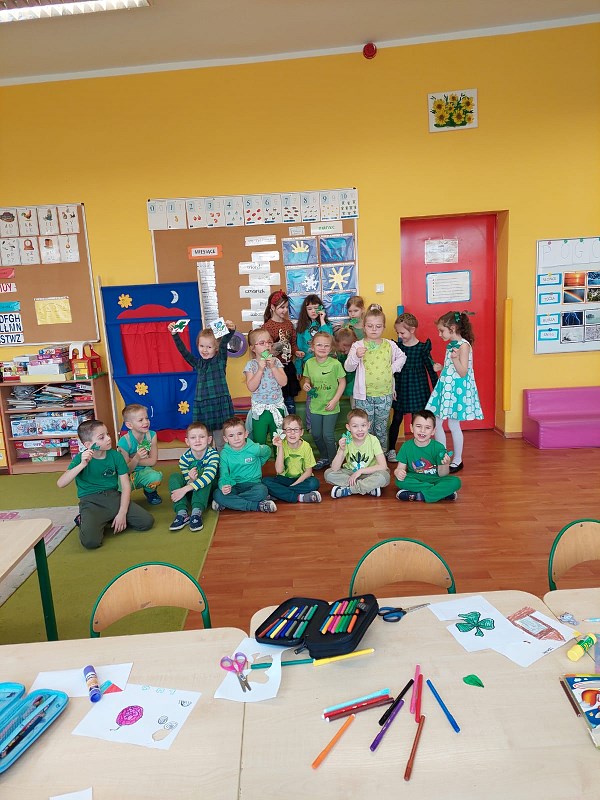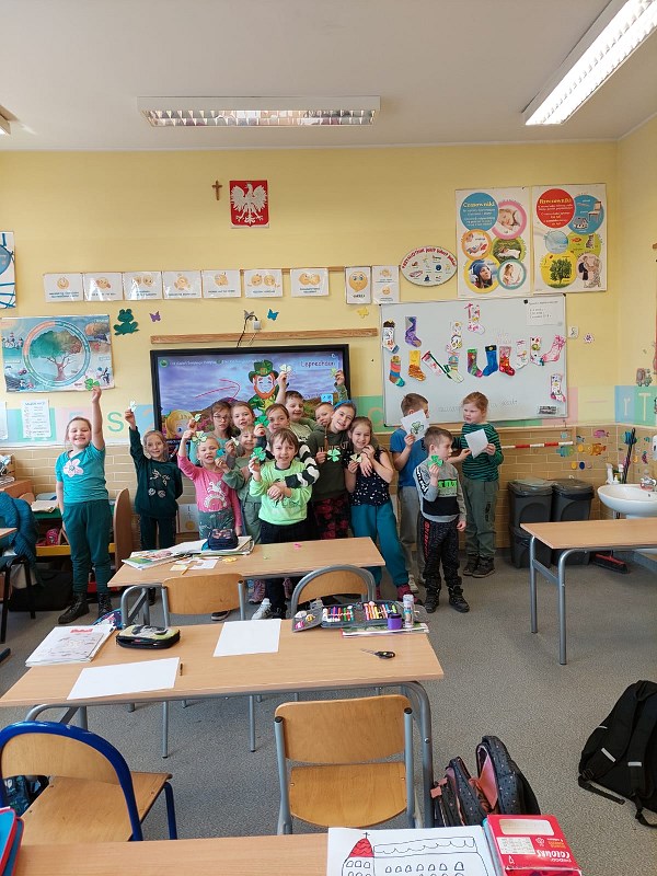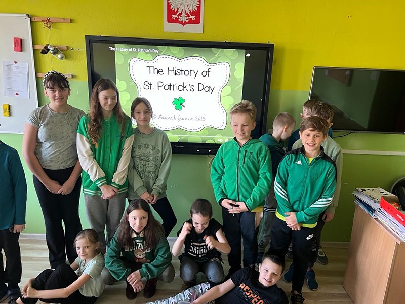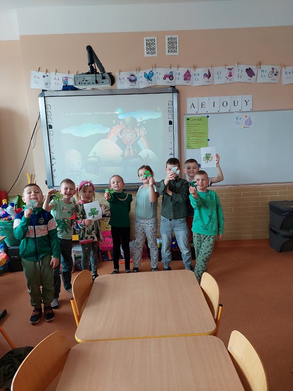 17 marca świętowaliśmy obchody Dnia Świętego Patryka, patrona Irlandii. Zgodnie z irlandzką tradycją uczniowie ubrali się na zielono, bowiem kolor ten nawiązuje do trawiastego krajobrazu wyspy. Jedną z atrakcji, która sprawiła dzieciom ogromną radość, było poszukiwanie garnca ze złotem, który według legendy znajduje się na końcu tęczy, natomiast na lekcjach języka angielskiego przybliżone zostały tradycje obchodów tego święta w Irlandii i na świecie.