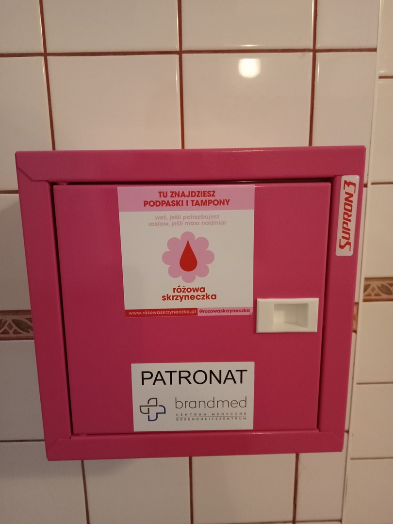 Fundacja zabiega o powszechny dostęp do bezpłatnych środków higieny osobistej na czas menstruacji. W różowych skrzyneczkach można znaleźć darmowe podpaski.
