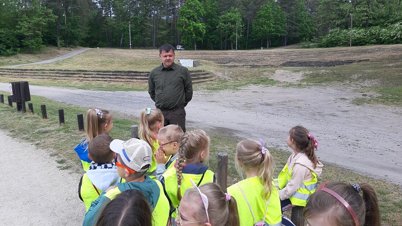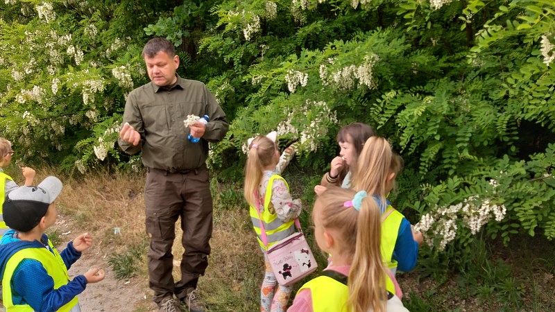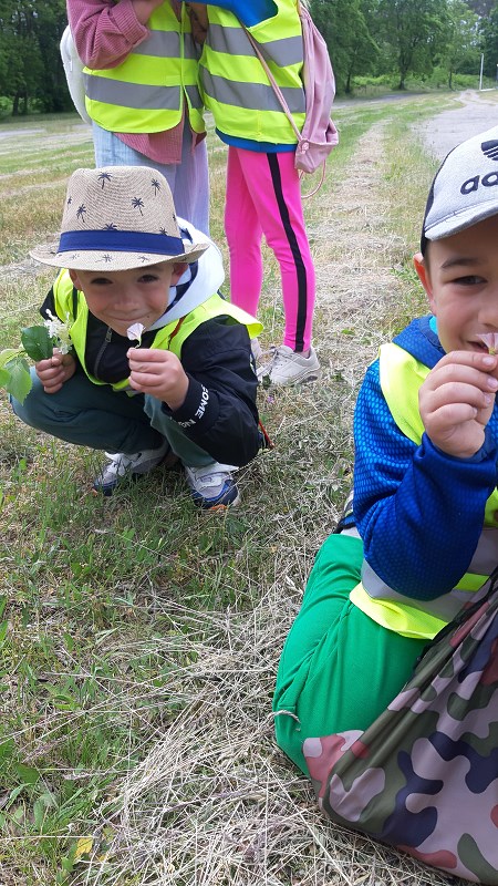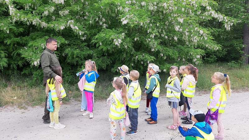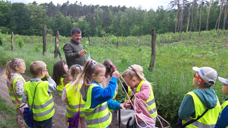 Razem z Panem leśnikiem dzieci nasłuchiwały śpiewu ptaków i szukały leśnych owadów. Odkrywały tajemnice lasu poprzez dotykanie oraz wąchanie kwiatów i liści drzew i krzewów. Atrakcją było smakowanie kwiatów akacji. Pan Paweł bardzo ciekawie opowiadał o leśnych roślinach i zwierzętach. Wszystkim dzieciom bardzo podobała się lekcja o lesie „ na żywo ".