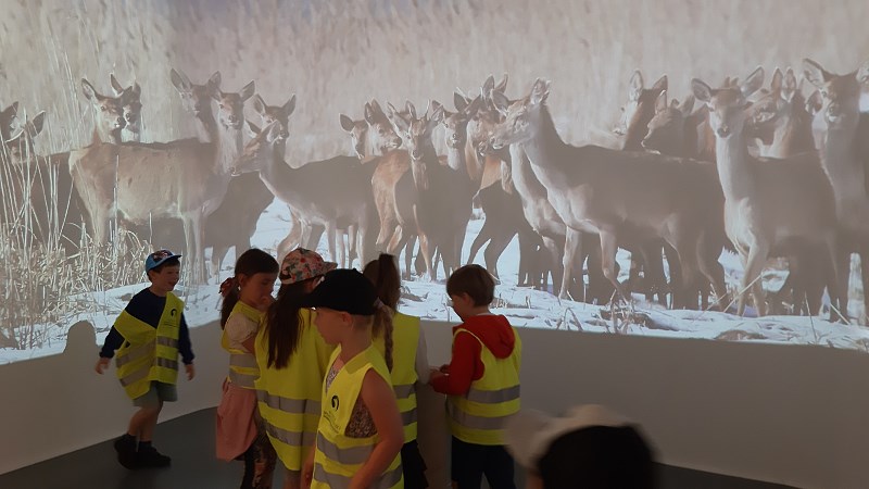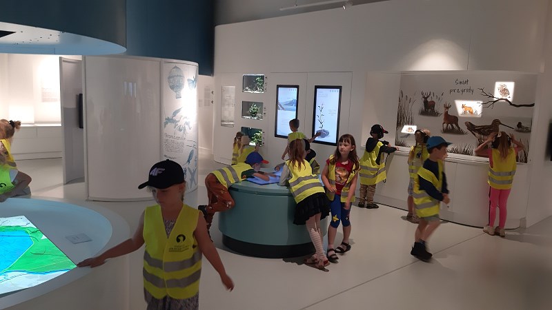 Zwiedzanie Ośrodka Muzealno - Edukacyjnego " Ujście Warty" okazało się wielką atrakcją. Dzieci mogły nie tylko zobaczyć, ale i usłyszeć piękne ptasie trele. Mogły obejrzeć unikatowe zdjęcia zwierząt z Parku Narodowego " Ujście Warty". Mogły również zachwycać się szczególnymi walorami przyrodniczymi i krajobrazowymi parku. Dużo emocji sprawiło dzieciom naśladowanie lotu ptaka i oglądanie ziemi z lotu ptaka. W zachwyt wprawiło dzieci olbrzymie akwarium z wieloma kolorowymi rybami oraz oglądanie podwodnego świata za pomocą peryskopów. Dla spostrzegawczych też było dużo niespodzianek - na przykład odkrywanie ptasich piór i jaj.