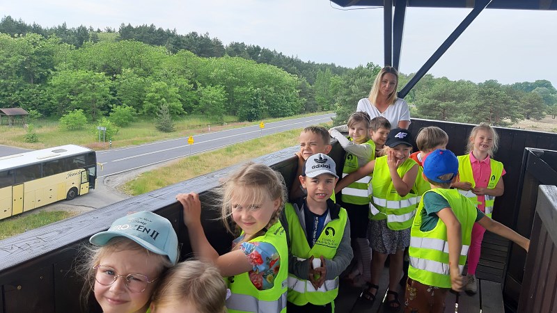 Na koniec wycieczki była jeszcze jedna atrakcja w postaci wieży widokowej. Dzieci podzielone na małe grupki, wchodziły na szczyt wieży, żeby podziwiać uroki krajobrazu.
