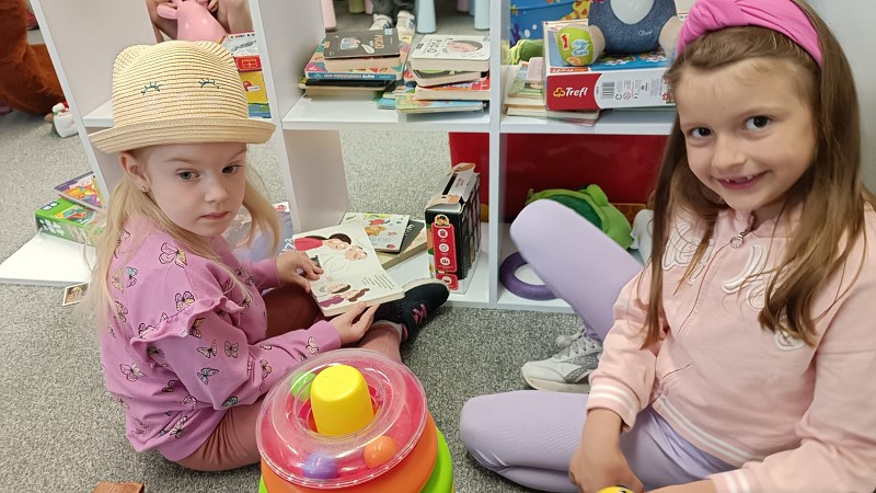 Dużą atrakcją były zabawy w kąciku z maskotkami. Pobyt w bibliotece umilił dzieciom Pan dyrektor MDK, który przeczytał dzieciom krótką bajkę o przyjaźni. Po miłej lekturze, Pani Patrycja zaprosiła dzieci do wykonania zakładek do książek, które maluchy zabrały ze sobą do szkoły. Na koniec spotkania, każde dziecko otrzymało od Pań bibliotekarek prezencik - książeczkę.