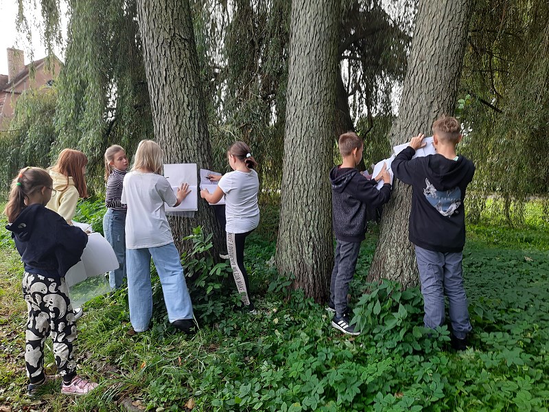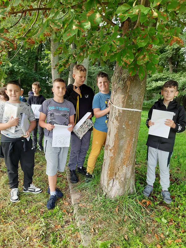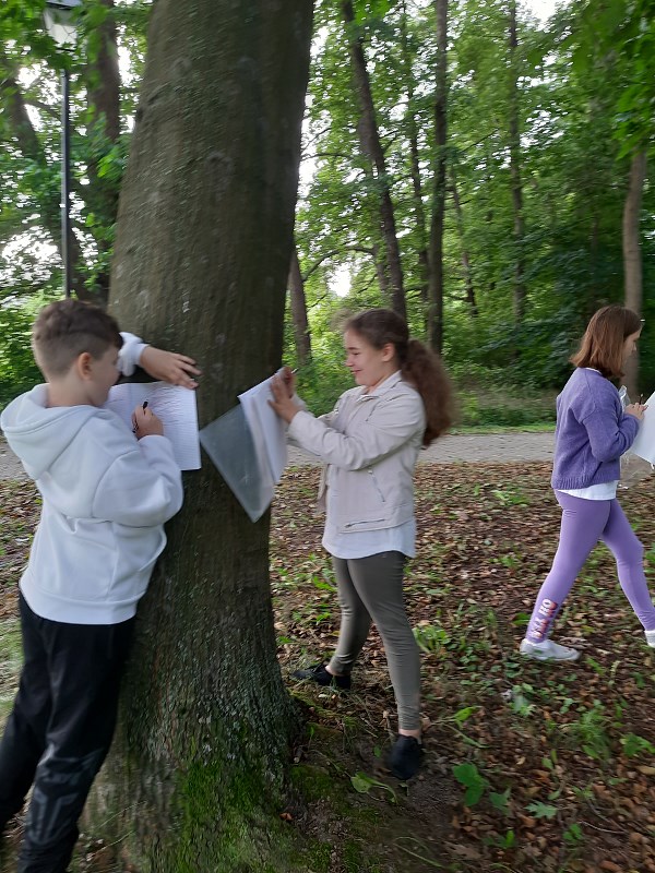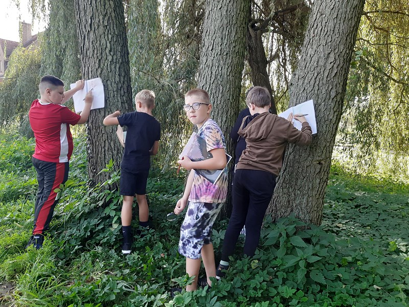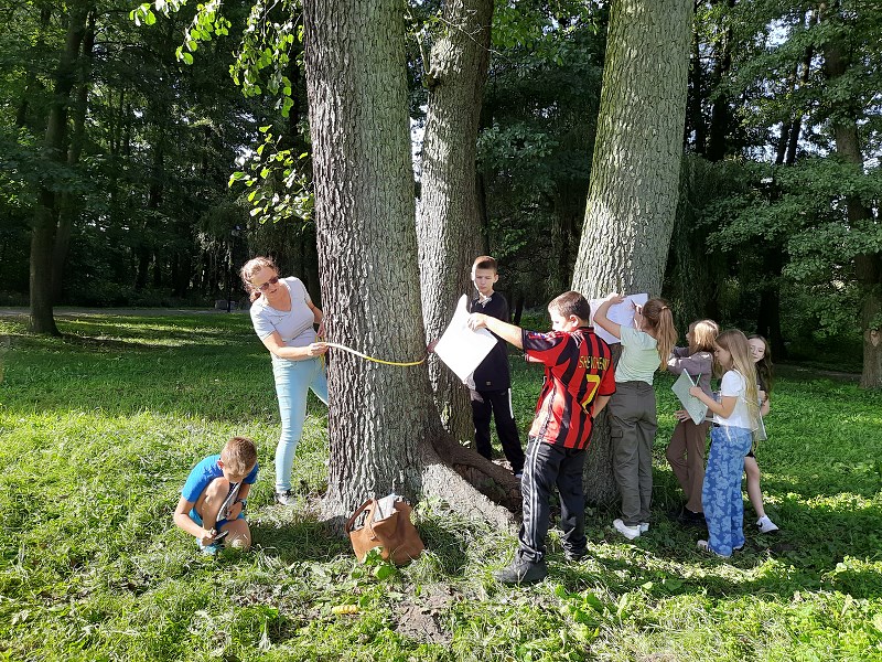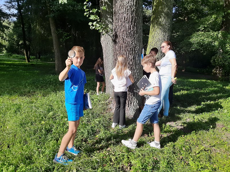 Uczniowie klasy 4a i 4b biorą udział w innowacji pedagogicznej z przyrody pt. „Przyroda Ośna Lubuskiego” . Głównym celem jest poznanie najbliższej okolicy. Dlatego, aby urozmaicić zajęcia, odbywają się one w terenie. I takie zajęcia pokazują, jak wyglądają rośliny występujące wokół nas i jakie żyją zwierzęta. Tym razem uczniowie obserwowali bezkręgowce – owady i pająki. Dzieci korzystały z lup zakupionych w ramach programu Laboratoria Przyszłości, aby bliżej przyjrzeć się organizmom. Nauczyli się również korzystania z centymetru krawieckiego podczas mierzenia obwodu dowolnego drzewa. Podopieczni spostrzegli, iż lekcje przyrody mają korelację z innymi przedmiotami, jakich uczą się w szkole i wiedzę tę mogą wykorzystać w życiu codziennym. Nie trzeba daleko wyjść, aby zobaczyć różnorodność flory i fauny naszej miejscowości. Poszliśmy w okolice Alei Basztowej i tam poznawaliśmy wartości przyrodnicze. Jak powiedział jeden z uczniów „Lekcja była fajna” .