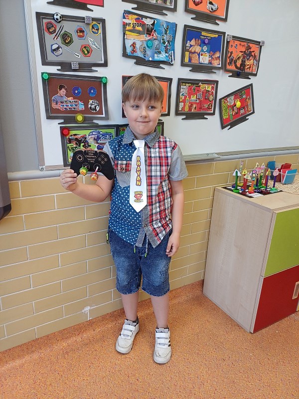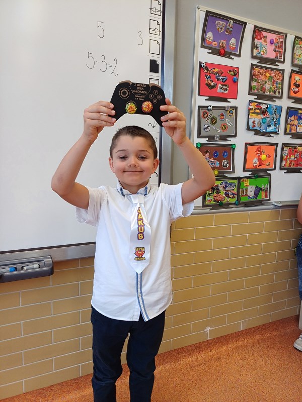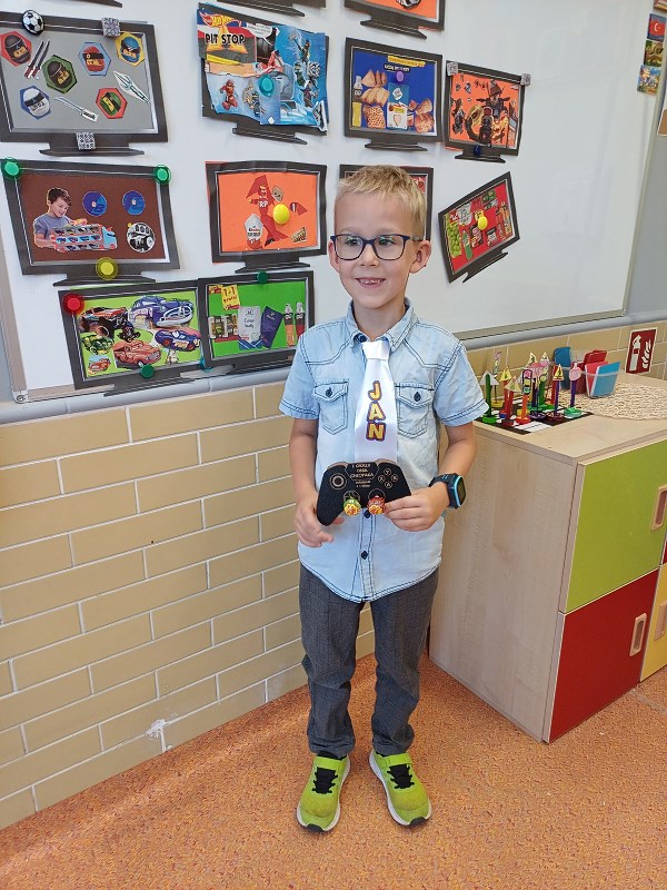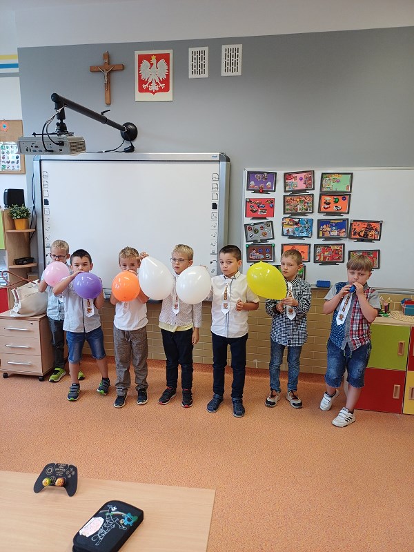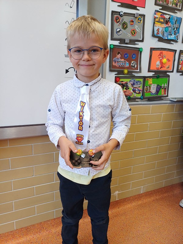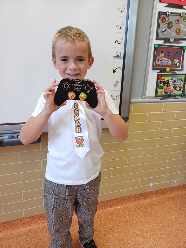 Z tej okazji w klasie 1c na chłopców czekały super niespodzianki – krawaty, pady oraz paczki ze słodkościami.