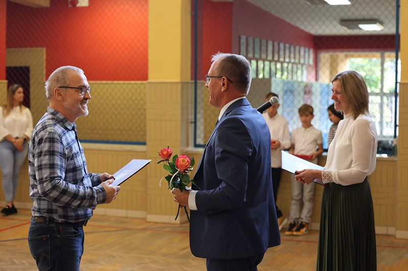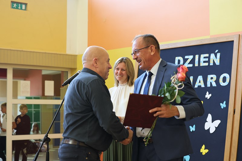 14 października to w kalendarzu wyjątkowa data dla wszystkich osób w różny sposób związanych ze szkołą. Dyrekcja, nauczyciele, pracownicy obsługi i oczywiście uczniowie obchodzą wtedy swoje święto, święto Edukacji Narodowej. Świętują wszyscy, ale szczególną uwagę zwraca się na nauczycieli, którzy są niezwykle ważni w całym procesie kształcenia dzieci oraz młodzieży i bez nich nie można mówić o szkole. Ta uroczystość to okazja do fetowania sukcesów, nagrodzenia pedagogów szczególnie się wyróżniających, ale też okazja do uśmiechów, uścisków, podziękowań, a co za tym idzie do wzruszeń, więc w niejednym oku kręci się tkliwa łezka. Ponieważ w tym roku Dzień Edukacji Narodowej przypada w sobotę, w większości szkół różne uroczyste spotkania z nim związane odbyły się dziś. Tak też było u nas w Ośnie. I nic nie szkodzi, że to właśnie 13 w piątek. Okazało się, że to wcale nie jest pechowy dzień, wręcz odwrotnie –szczęśliwy i radosny.
