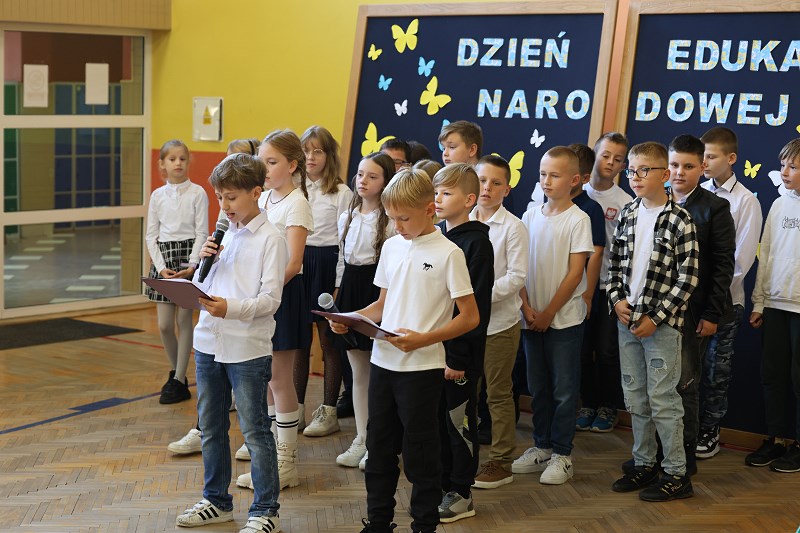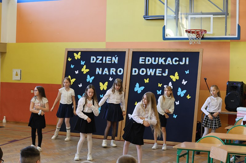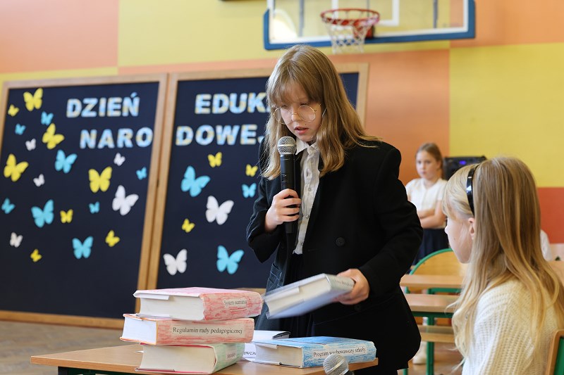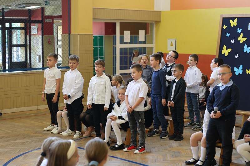 Dyrekcja, nauczyciele, inni pracownicy i uczniowie zostali zaproszeni na przedstawienia. Klasom IV-VIII występy przygotowała pod bacznym okiem Pani Justyny Kowalskiej klasa IV b, a młodsi , czyli 0-III obejrzeli przedstawienie w wykonaniu wychowanków Pani Ewy Najborowskiej i Pani Anny Zawadzkiej, czyli klas II. Oba spotkania współorganizował szkolny samorząd pod kierunkiem nieocenionego opiekuna, Pana Marcelego Chomicza, a o oprawę muzyczną, jak zwykle, zadbał nasz koncertmistrz, Pan Roman Stefaniak. Oczywiście w tak ważnym dniu nie mogło zabraknąć gości, więc zaszczycił nas swoją obecnością burmistrz Ośna, Pan Stanisław Kozłowski. Pani dyrektor Kamilla Kwiręg przypomniała, jak ważna jest szkoła i nauka, jak wiele trzeba trudu, by osiągnąć sukcesy, ale przy wspólnym zaangażowaniu wszystko może się udać. Pan burmistrz także podkreślił jak trudny a zarazem przyjemny jest proces edukacji, bo z jednej strony są różne kłopoty, a z drugiej satysfakcja, gdy coś się udaje. Na dowód tego, że wiele się udaje i że sukcesów nie brakuje, wręczył nagrody nauczycielom, których uczniowie w ubiegłym roku szkolnym zdobyli laury w różnych konkursach na szczeblu wojewódzkim i ogólnopolskim (przypomnijmy, że uczniowie zostali uhonorowani na apelu podsumowującym rok szkolny). Nagrody otrzymali: Pani Ewa Stefaniak, Pan Jerzy Baranowski, Pan Bogdan Urkiel, Pan Łukasz Wit oraz Pan Mirosław Woronowicz. Wraz z wyróżnieniami otrzymali gromkie brawa. Przedstawiciele samorządu wręczyli także wszystkim pedagogom medale super nauczycieli a pracownikom własnoręcznie zrobione listki-mydełka. Po części oficjalnej przyszła pora na występy. I młodsi , i starsi artyści zaprezentowali w swoich słowno-muzycznych montażach scenki z życia szkoły dawniej i dziś. Salwy śmiechu słychać było pewnie daleko poza murami szkolnej sali, ale nie zabrakło też chwil wzruszenia, gdy w słowach konferansjera czy w piosenkach zabrzmiały życzenia i podziękowania dla nauczycieli za ich serce, które okazują uczniom. Nie mogła zostać niezauważona piękna sentencja, która towarzyszyła zebranym w sali. Słowa Barbary Cage: „Nauczyciel widzi więcej niż tylko twarze dzieci – stara się zobaczyć ich dusze” pięknie oddają istotę tego zawodu. Pan burmistrz stwierdził, że ta profesja to misja. I chyba właśnie to sprawia, że każdy uczący ma ten „czarodziejski wzrok”, by zobaczyć nie tylko, czy uczeń się uczy, czy odrabia zadania, czy dobrze napisał sprawdzian, ale także to, czym to dziecko teraz żyje, czym się pasjonuje, ale także czym się martwi, co sprawia, że coś idzie mu nie tak. Zauważa radości i smutki, które „grają w duszy” dziecka. Zauważa i reaguje, gdy trzeba pocieszy, kiedy indziej skarci, ale często po prostu posłucha, co młody człowiek chce mu powiedzieć.