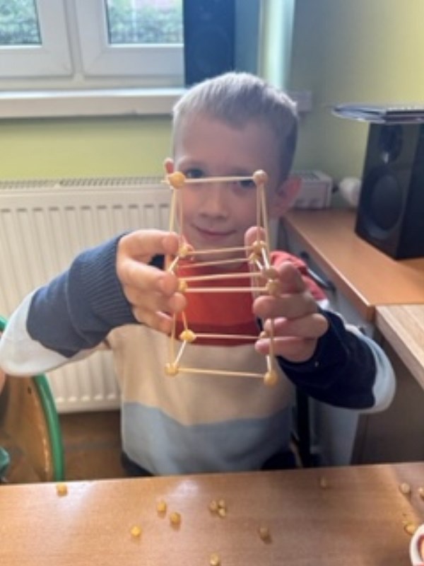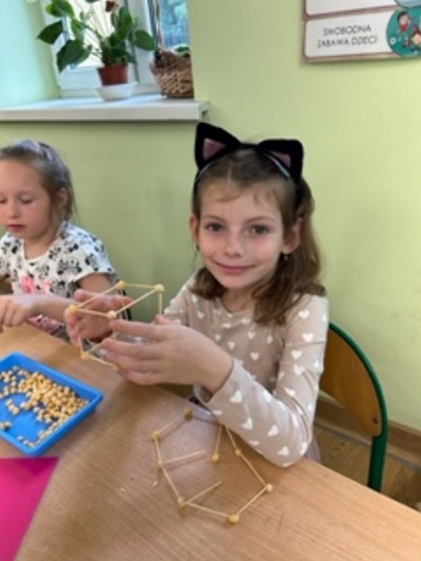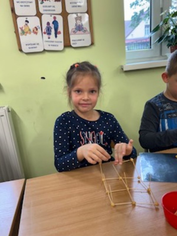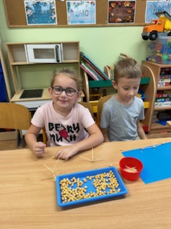 We wrześniu grupa zerówkowa „ Podróżnicy" dołączyła do projektu edukacyjnego "Zabawa sztuką", którego koordynatorem w naszej szkole jest p. Anna Matuszewska. Czy sztuka to trudna i nudna tematyka dla dzieci? Nie, pod warunkiem że się nią bawimy. Zrealizowaliśmy już pierwsze zadanie: "Freblowska konstrukcja". Praca polegała na stworzeniu przy pomocy wykałaczek i ciecierzycy własnego projektu przestrzennego. Dzieci z zapałem przystąpiły do pracy, rozwijając przy tym wyobraźnie przestrzenną oraz kreatywność.