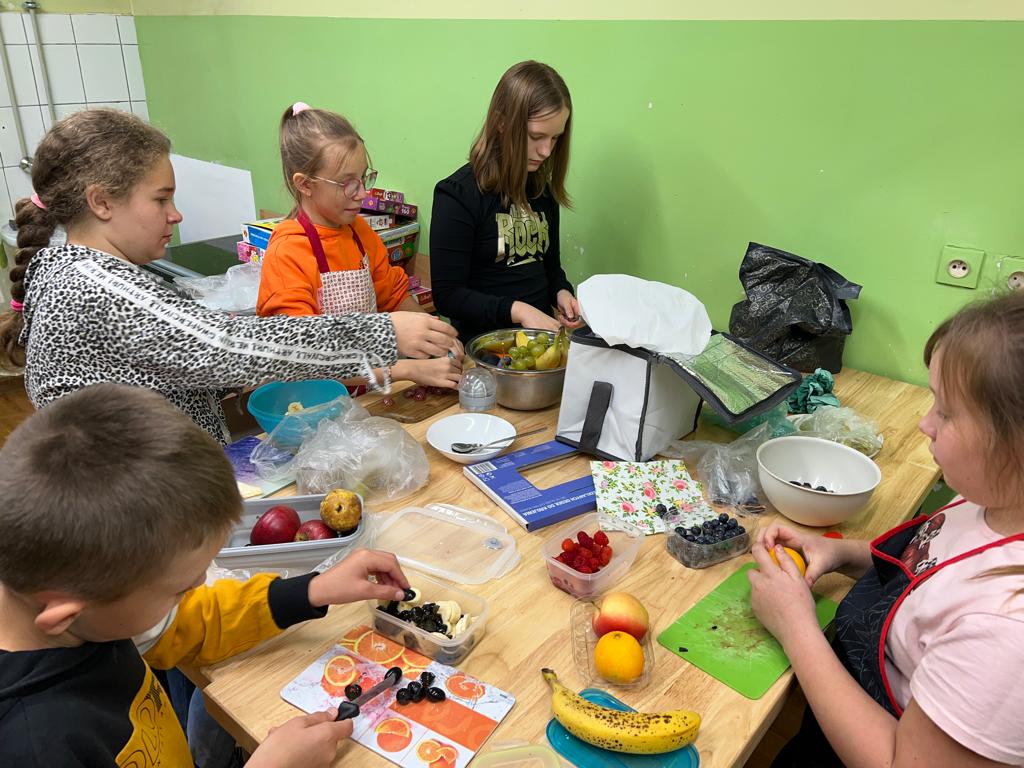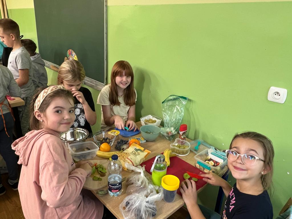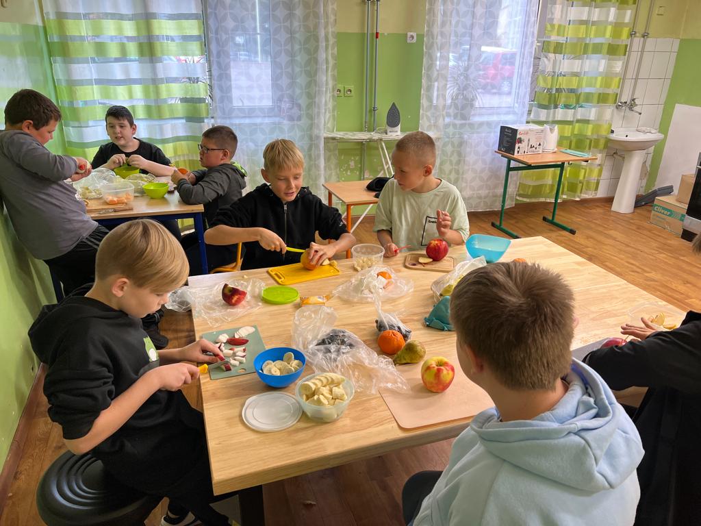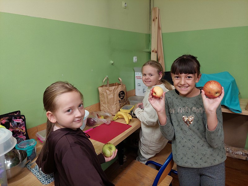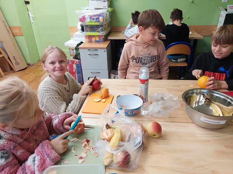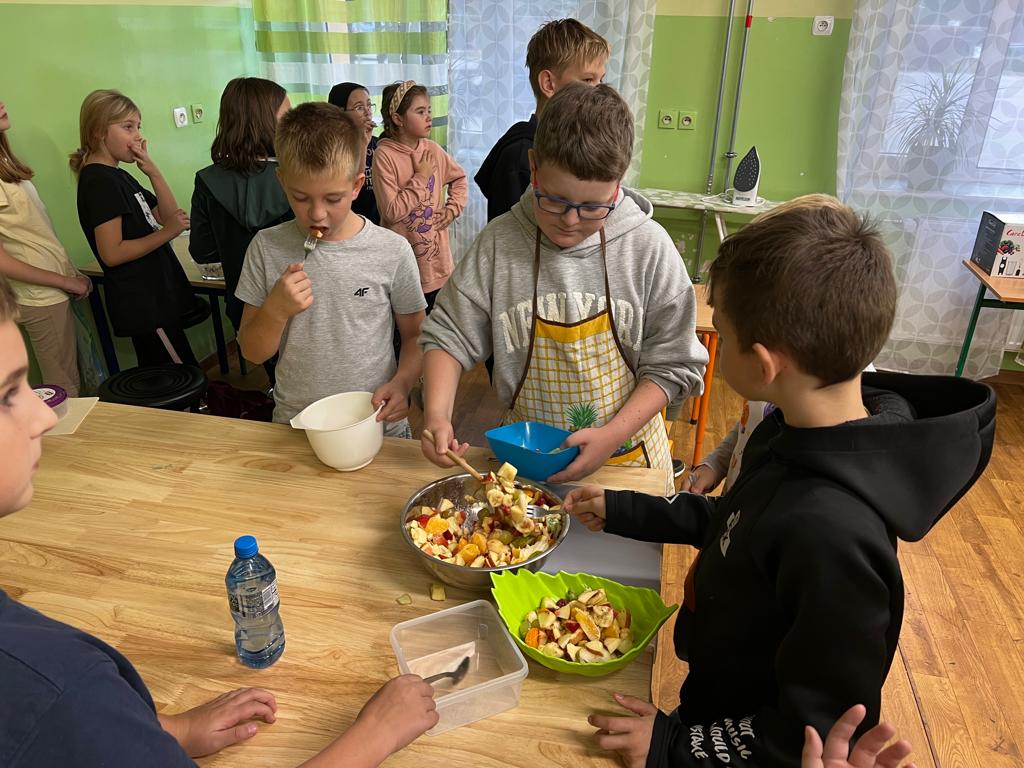 Klasy 3 i 4 obchodziły w dniach 20 i 23 października „Dzień owoców i warzyw”. Był to pierwszy dzień z dni projektu English Special Days, którego koordynatorem w naszej szkole jest p. Monika Jurkiewicz – Wnuk. Dzieci poznały słownictwo związane z pracą w kuchni oraz nazwy owoców i warzyw w języku angielskim. Praca powiązana z zabawą sprzyjała przyswajaniu nowego słownictwa.