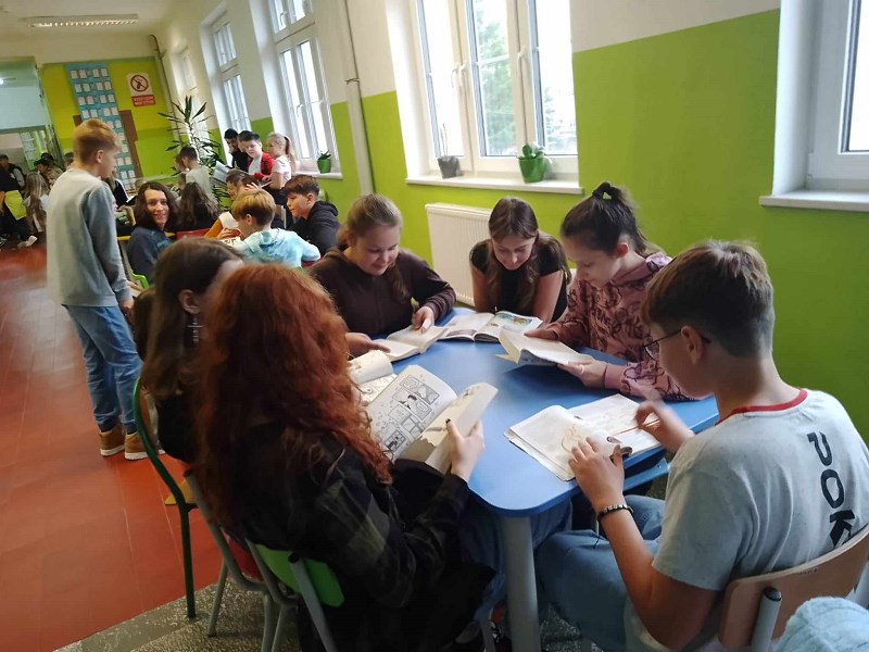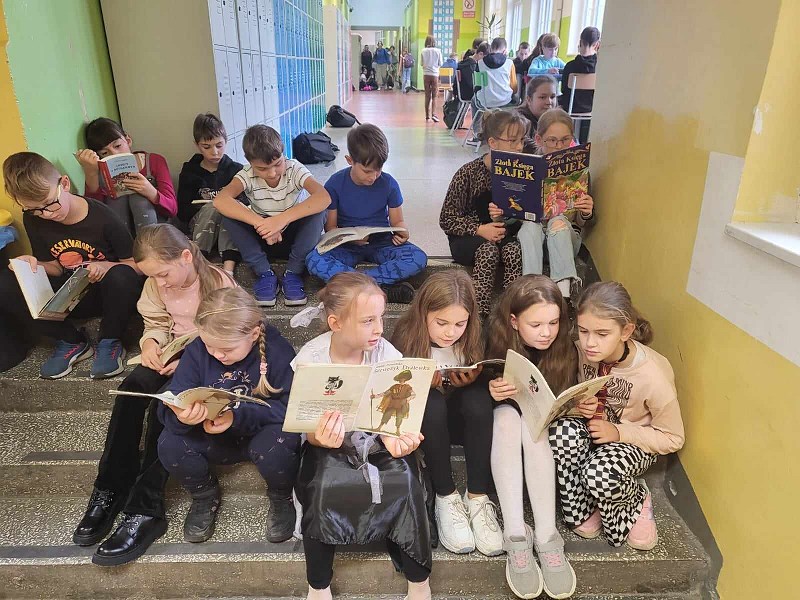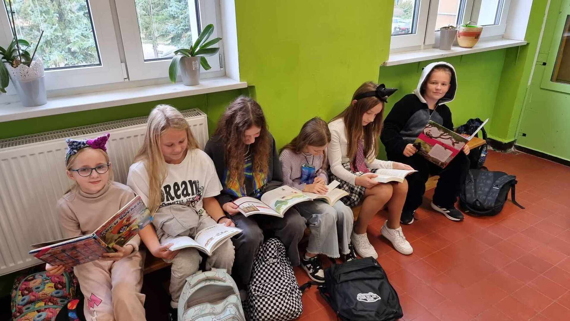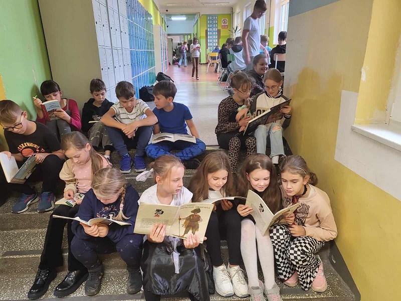 Czytanie to najpiękniejsza zabawa, jaką sobie wymyśliła ludzkość – słowa patronki roku 2023, czyli Wisławy Szymborskiej, świetnie nawiązują do corocznej akcji „Przerwa na czytanie”, w której i nasza szkoła wzięła udział 25.10.2023r. Tego dnia, na korytarzach podczas przerwy, najczęstszym obrazkiem był zaczytany/na uczeń bądź uczennica. Lektury lub ulubione książki spoza kanonu uprzyjemniły dzieciom chwilę relaksu między lekcjami. Jak się okazuje, czytanie w naszej szkole to nie przykry obowiązek, lecz super zabawa. Ale też niezbędny intelektualny trening, którego potrzebuje każdy umysł.