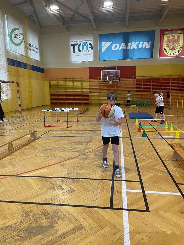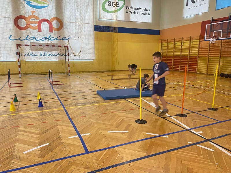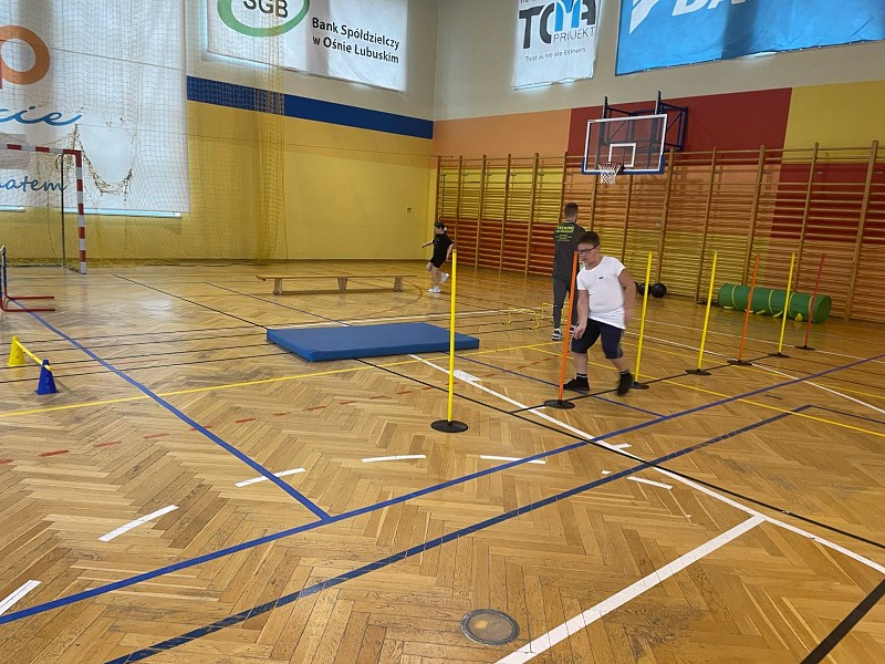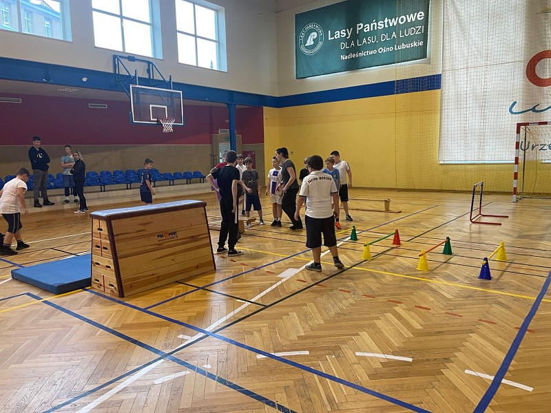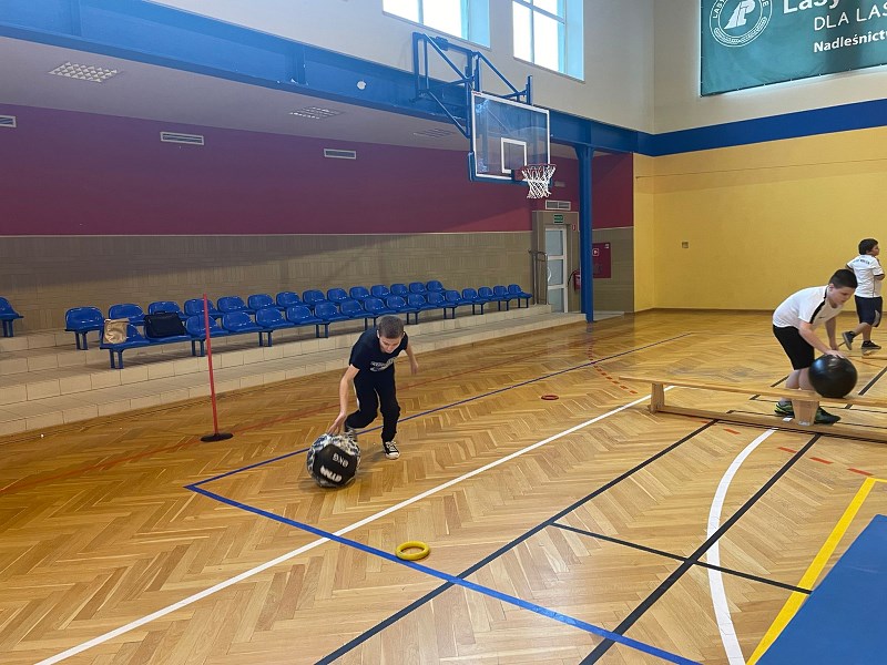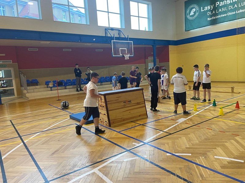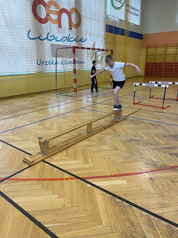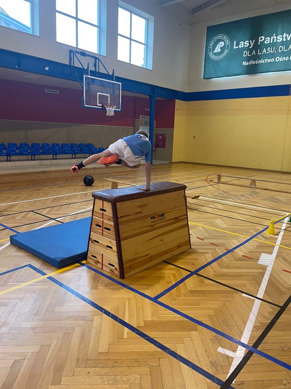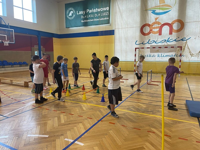 Na lekcjach wychowania fizycznego wiele się dzieje, każdy uczeń wśród różnorodnych aktywności znajdzie coś dla siebie. Gdy sprzyja pogoda, zajęcia odbywają się na dworze, a gdy jest zimno lub deszczowo są realizowane w sali, ale to wcale nie oznacza, że stają się mniej ciekawe. Dużą popularnością zawsze cieszą się gry zespołowe, jednak równie chętnie, zwłaszcza przez dziewczyny, wykonywane są ćwiczenia w rytm muzyki puszczanej z głośników. Natomiast ostatnio wuefiści przygotowali uczniom wieloetapowy tor przeszkód. Znalazło się w nim kilkanaście stanowisk. Uczniowie musieli biegać, skakać, turlać piłkę, robić przewroty i różne inne ćwiczenia, a wszystko na czas. To zadanie okazało się niezwykle ekscytujące. Nikogo nie zniechęcił nawet wymagający i na pierwszy rzut oka trudny skok przez skrzynię. Każdy dawał z siebie wszystko, by jak najszybciej pokonać wszystkie stanowiska, a przede wszystkim samego siebie i swoje obawy, że coś może się nie udać. Było słychać śmiech i doping. Wszyscy świetnie się bawili. Niektórzy wykonali zadanie dwa razy, żeby poprawić swój czas, skrupulatnie mierzony przez nauczycielkę wychowania fizycznego Panią Iwonę Osińską. Z zazdrością na ćwiczących patrzyli ci, którzy z różnych powodów nie mogli tego dnia brać udziału w zajęciach i przyglądali się ćwiczącym z widowni. Kolejny raz okazało się, że w szkole można się znakomicie bawić, a przy okazji zdobywać nowe doświadczenia i umiejętności.