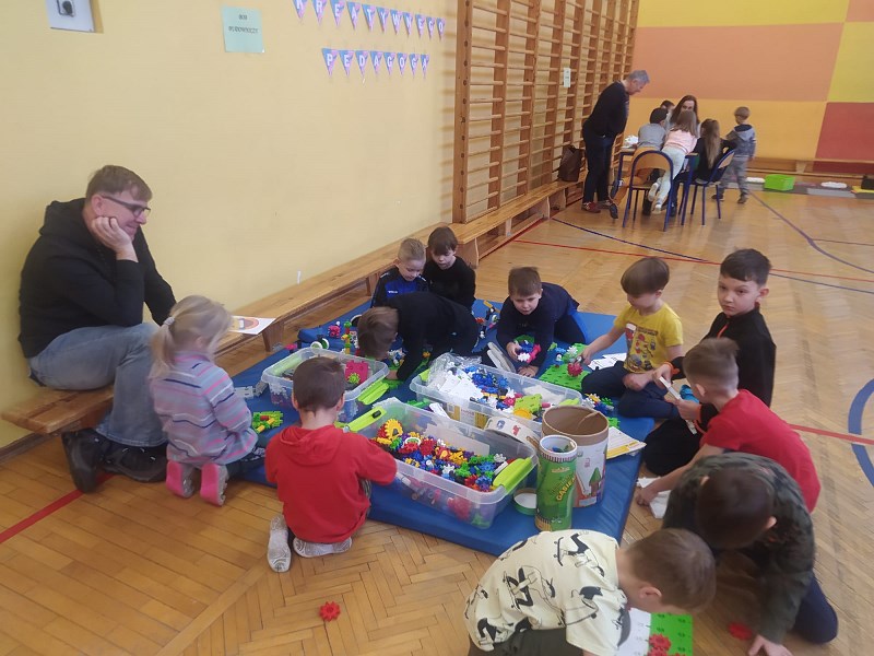 Stanowisko 5 – „Bob Budowniczy”, gdzie pan Roman Stefaniak czuwał nad pomysłowymi zabawami konstrukcyjnymi z klocków drewnianych