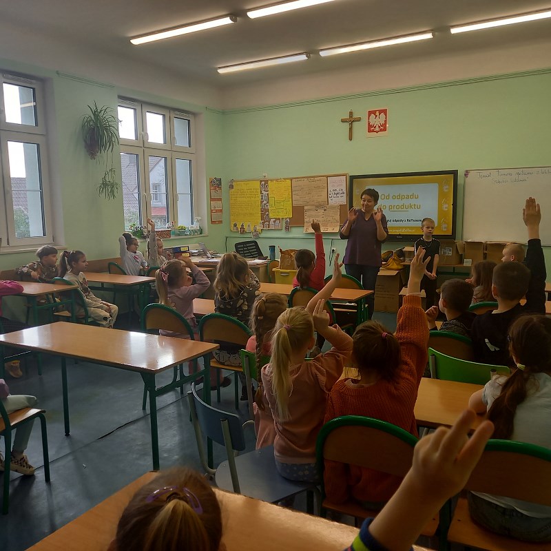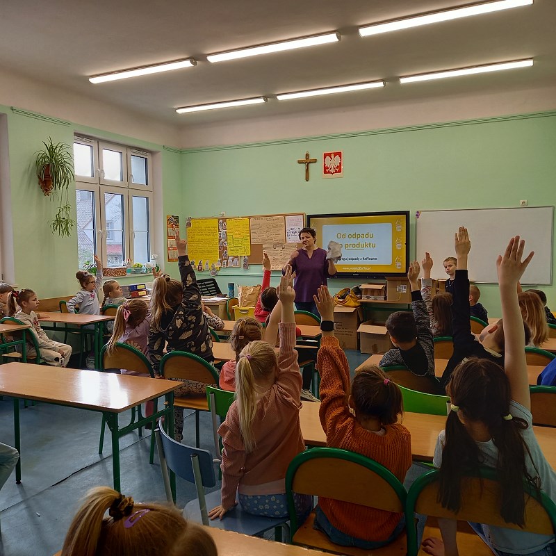 Nasze szkoła bierze udział w projekcie ekologicznym “Segreguj z ReFlexem” - zbiórka i recykling elastycznych odpadów opakowaniowych. Celem projektu jest rozwijanie świadomości ekologicznej w zakresie właściwego postępowania z opakowaniami elastycznymi. 23.04.2024 r. uczniowie klas pierwszych i czwartych uczestniczyli w warsztatach edukacyjnych w ramach projektu. Celem warsztatów było omówienie zagadnienia właściwego postępowania z odpadami elastycznymi. Odpady elastyczne to np. opakowania po płatkach śniadaniowych, chipsach, batonach, kaszkach dla dzieci, zupkach instant. Opakowania te wyrzucamy do żółtego pojemnika. Podczas warsztatów aktywni uczniowie zostali obdarowani eko gadżetami.
