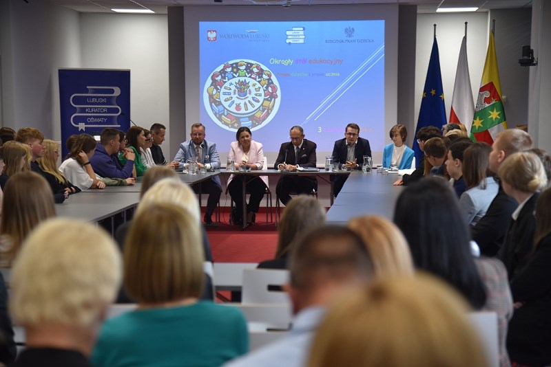 Spotkanie, którego tematem były prawa dziecka i prawa oraz obowiązki ucznia rozpoczęło się wystąpieniami organizatorów i zaproszonych gości m.in. p. Mariusza Biniewskiego Lubuskiego Kuratora oświaty , p. Marka Cebuli Wojewody Lubuskiego.