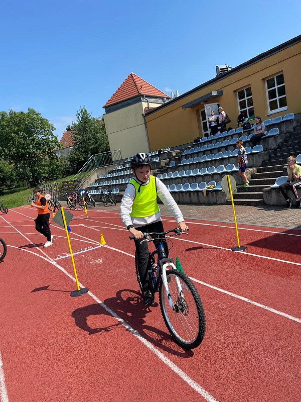 Nasi czwartoklasiści przystąpili dzisiaj do egzaminu na kartę rowerową. Na specjalnie przygotowanym torze jazdy musieli wykazać się umiejętnością jazdy na rowerze oraz bardzo dobrą znajomością przepisów ruchu drogowego. Wszyscy uczniowie przystępujący do egzaminu ukończyli go z wynikiem pozytywnym.