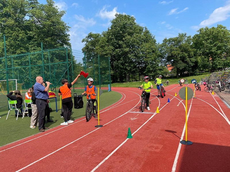 Nad bezpieczeństwem rowerzystów czuwała szkolna służba medyczna.