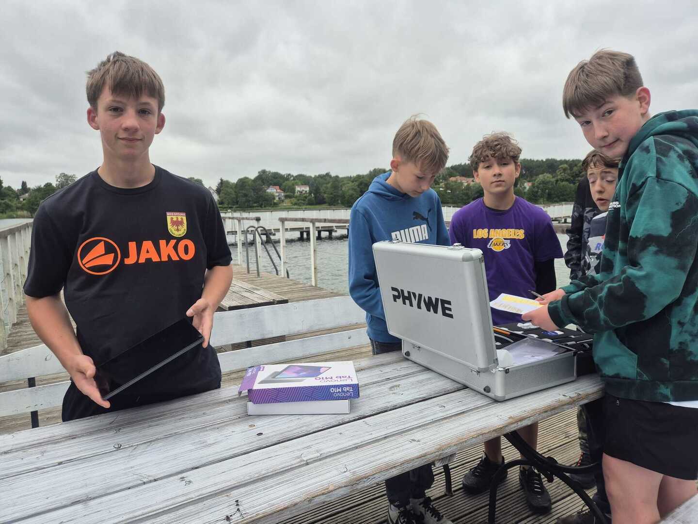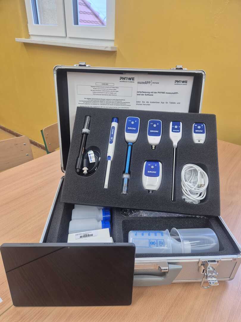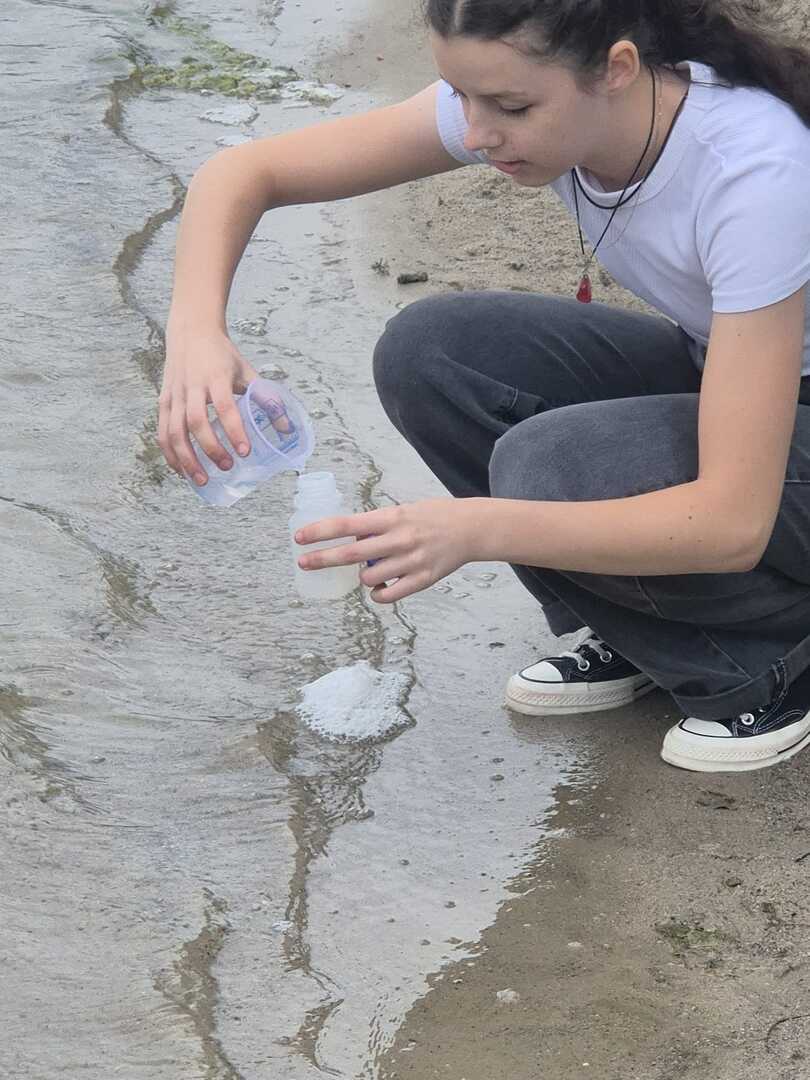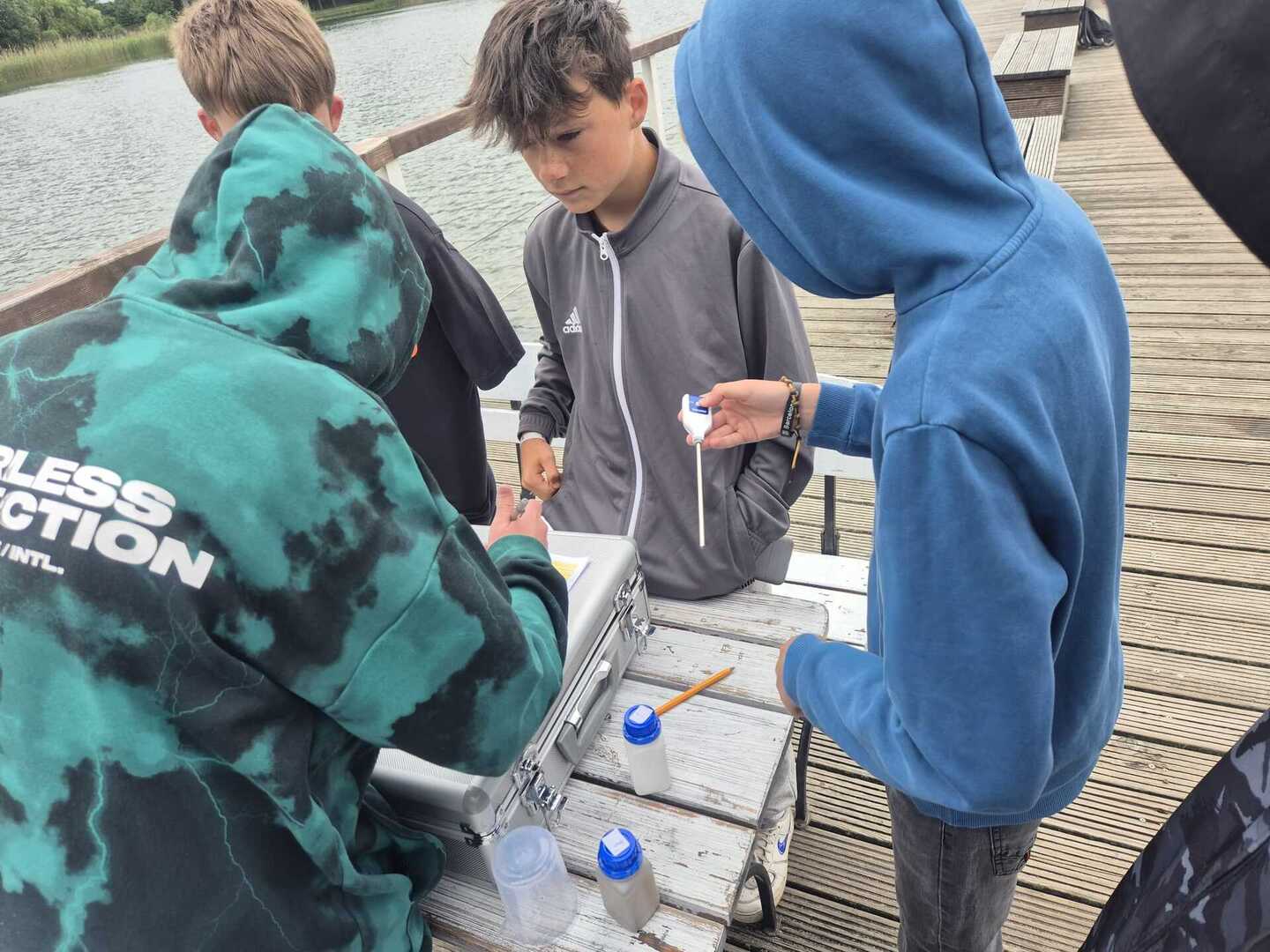 W czasie lekcji chemii klasa VII A miała okazje wykonywać doświadczenia dotyczące wody przy pomocy sprzętu zakupionego z projektu Lubuskie Szkoły Eksperymentów. Uczniowie badali wodę nad jeziorem Reczynek. Sprawdzali jej temperaturę, przejrzystość oraz zapach.