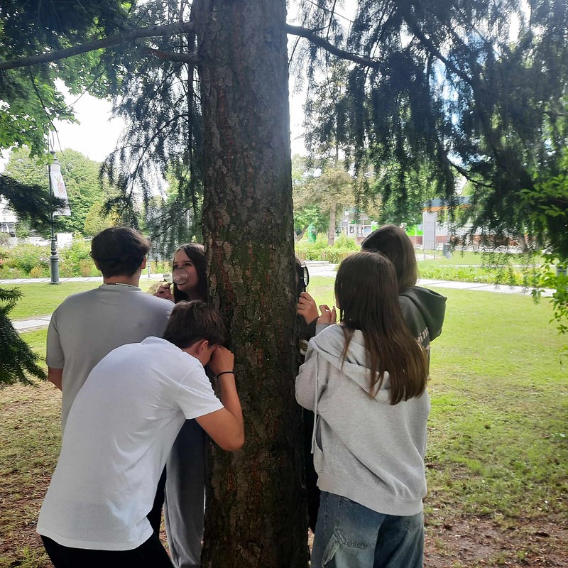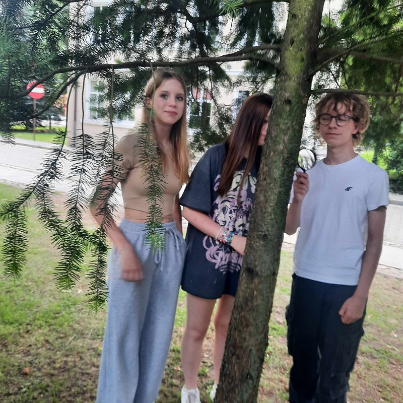 Uczniowie klasy ósmej wyszli w teren w czasie lekcji biologii w poszukiwaniu porostów na terenie Ośna Lubuskiego. Porosty dostarczają informacji o stanie czystości powietrza na określonym terenie. Młodzież korzystając z lup, poszukiwała i obserwowała porosty na murach oraz na drzewach przy fontannie. Dodatkowo poznała nazwy roślin rosnących w najbliższej okolicy oraz słuchała śpiewu ptaków. Każda lekcja w terenie dostarcza wielu cennych informacji, poszerza wiedzę o miejscowości, w której mieszkamy oraz uczy bezpiecznego poruszania się po najbliższej okolicy. Jest źródłem bezcennej wiedzy, którą dobrze zdobywa się poprzez doświadczenia i obserwacje.