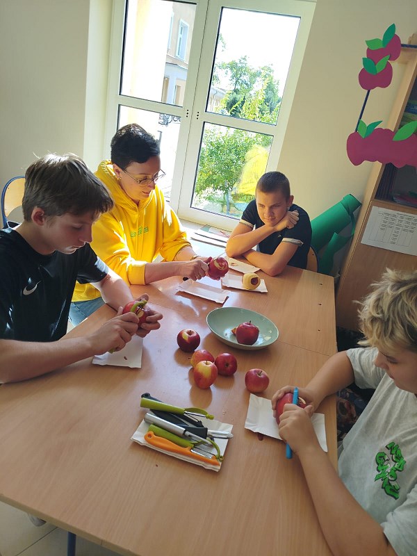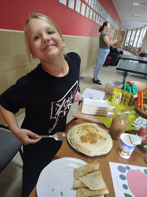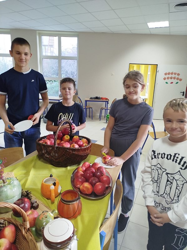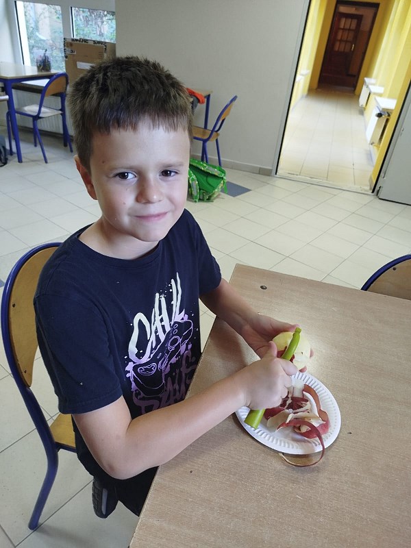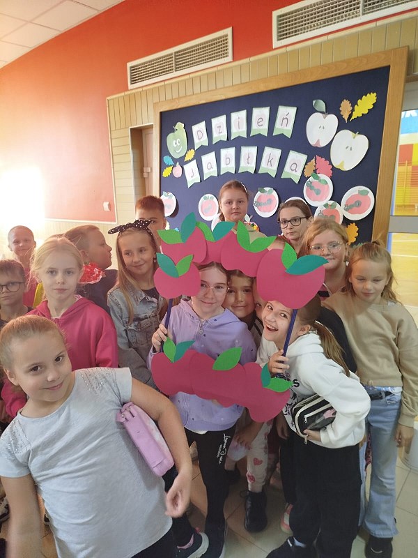 Słodki zapach jabłek unosił się po korytarzu przy hali gimnastycznej. Dziś świetlica świętowała Dzień Jabłka, częstując uczniów chrupiącym jabłuszkiem, naleśnikami z musem jabłkowym z domowej spiżarni. Odbył się konkurs na najdłuższą skórkę od jabłka, a nagrodami w konkursie był soczek i mus jabłkowy. Korzystając z okazji porozmawialiśmy o tym, dlaczego warto jeść nie tylko jabłka, ale i inne owoce i warzywa, jakie mają wartości odżywcze oraz witaminy ważne dla naszego zdrowia. Chcieliśmy też pokazać, że słodkie jabłka mogą być świetną, zarazem zdrową alternatywą dla słodkiej przekąski, ucząc dzieci zdrowych nawyków żywieniowych. Powstała również piękna galeria prac plastycznych z jabłkiem w roli głównej. Było smacznie, zdrowo i kolorowo!