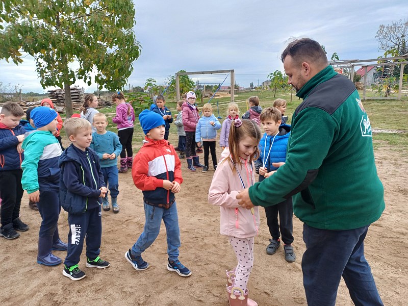 Jadąc na pole zabytkowymi ,,budami'' dzieci radośnie śpiewali piosenki i było bardzo wesoło. Po dotarciu na pole wszyscy rzucili się do zbierania ziemniaków, które momentalnie znalazły się w kontenerze. Pani Mariola przybliżyła nam historię ziemniaka, jego wzrastania i jak można przygotować pyszne potrawy . I tak w wesołym towarzystwie zbieracze ziemniaków dotarli do Lawendowej Zagrody. Tam przy lawendowym zapachu uczniowie brali udział w zawodach sportowych i zabawach na bardzo ciekawym placu zabaw. Głodni i zmęczeni uczestnicy szybko zabrali się do pałaszowania kiełbasek z grilla.