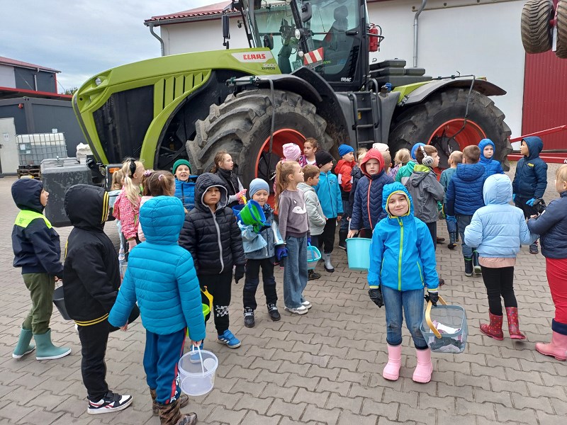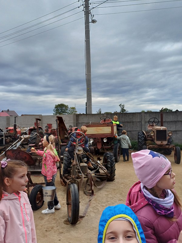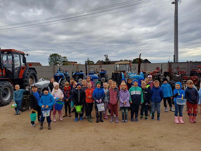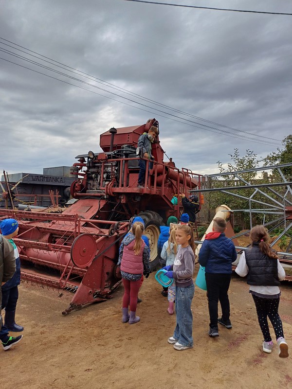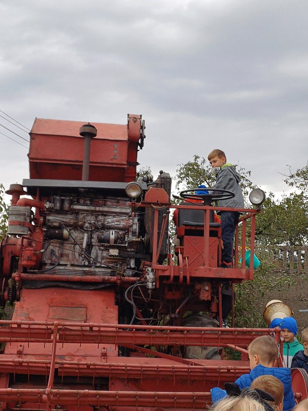 W czwartek 26 września zajęcia pierwszaków z naszej szkoły odbyły się nieco inaczej niż zwykle. Wszyscy uczniowie wraz z wychowawcami udali się do gospodarstwa pani Marioli i Radosława w Połęcku, gdzie odbyło się Święto Pieczonego Ziemniaka .Podczas pobytu zwiedzili hale ,gdzie się przechowuje ziemniaki. Następnie dzieci oglądały zabytkowe pojazdy i maszyny rolnicze .Oczywiście nie obyło się bez przejażdżki zabytkowym ciągnikiem czy maszyną , która kosiła siano, zajrzeliśmy też na najstarszy kombajn do koszenia zboża. Wszystko było tak interesujące ,że każdy musiał usiąść na wybranej maszynie.