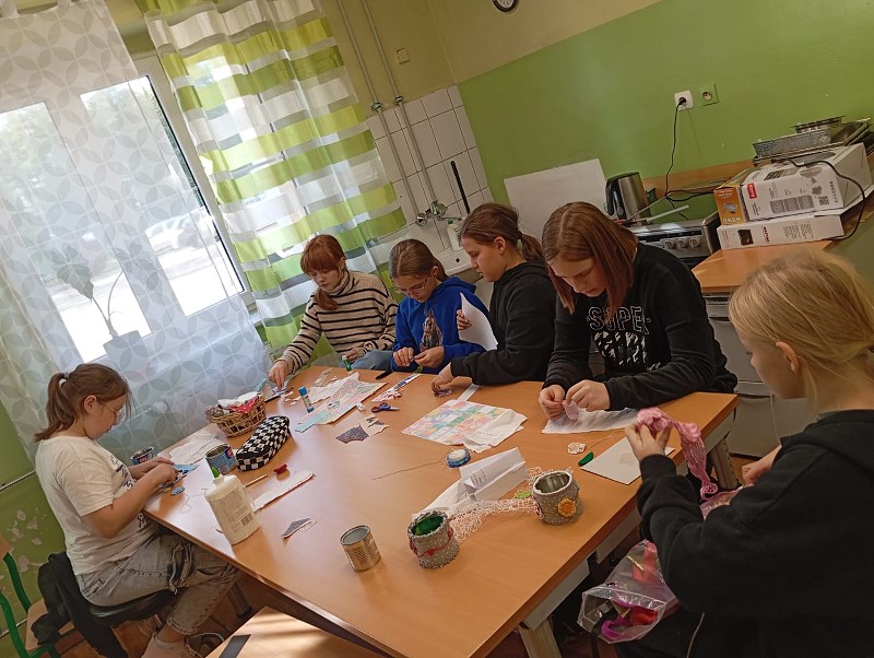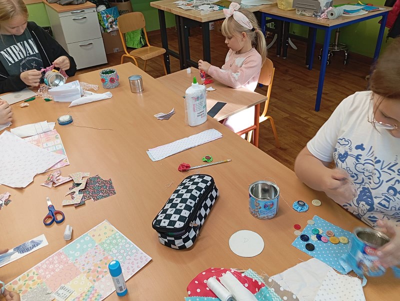 Miło jest patrzeć jak uczestniczki kółka ,,Małe rękodzieło" ochoczo i z dużym zaangażowaniem tworzą cudne rzeczy. Tak powstały zakładki do książek czy też pudełka na drobiazgi.