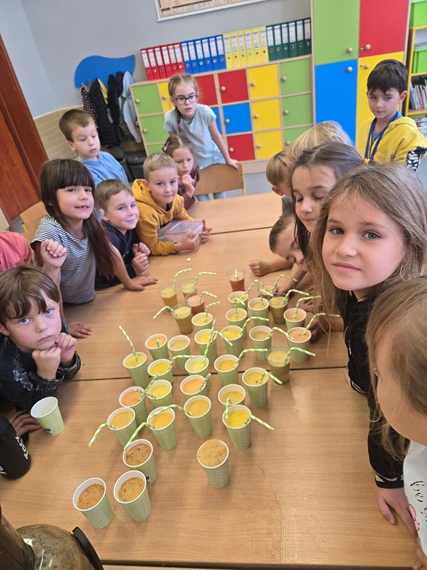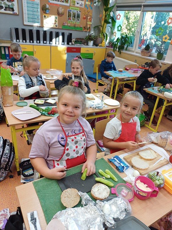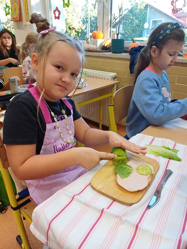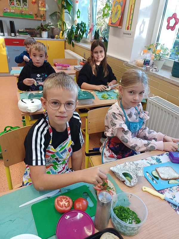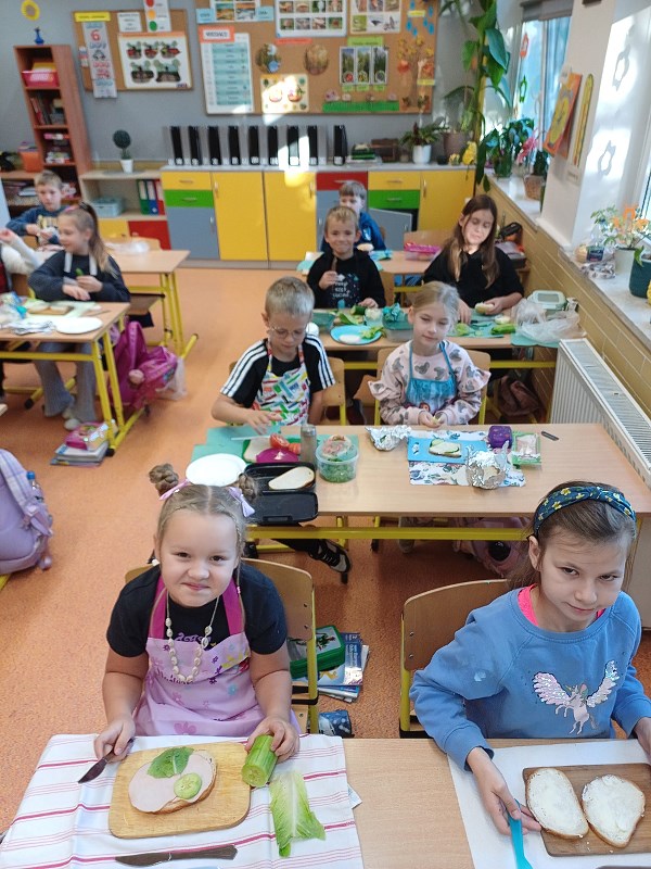 Dzieci bardzo lubią zajęcia, które nie tylko pobudzają ich wyobraźnię, ale również uczą wielu przydatnych rzeczy. Nasi uczniowie doskonale wiedzą, że posiłki powinny być zdrowe i powinny zawierać dużo owoców i warzyw. Jeśli do tego podczas przygotowań posiłków panuje wyjątkowo miła atmosfera, to wszystko co przygotujemy do jedzenia, będzie jeszcze lepiej smakowało. W naszym menu każdy znalazł coś dla siebie.