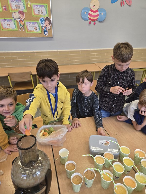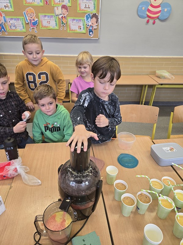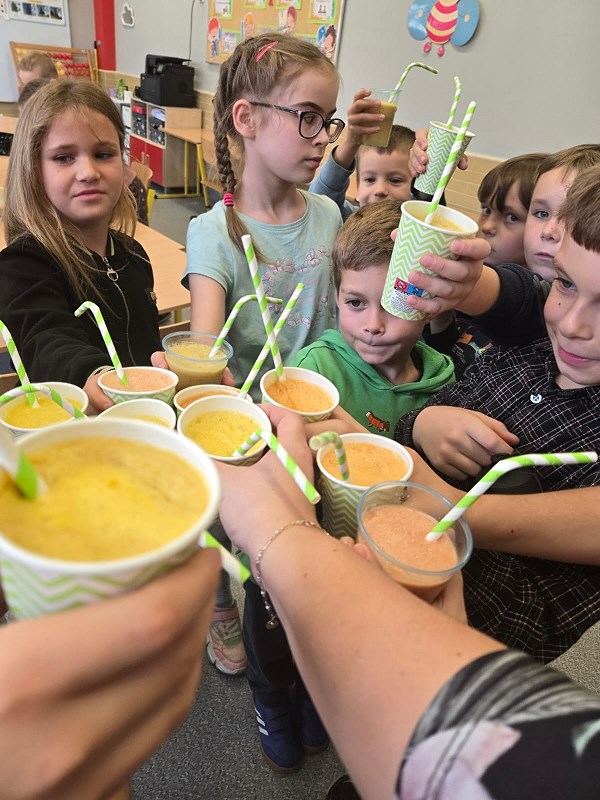 Mini warsztaty kulinarne w klasie 1a i 2c przyniosły wiele dobrej zabawy. Pierwszaki przygotowały smaczne, wieloowocowe soczki, a drugoklasiści puścili wodzę swojej kulinarnej fantazji i stworzyli piękne, kolorowe kanapki.
