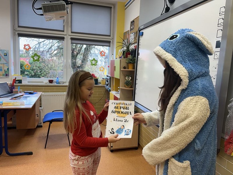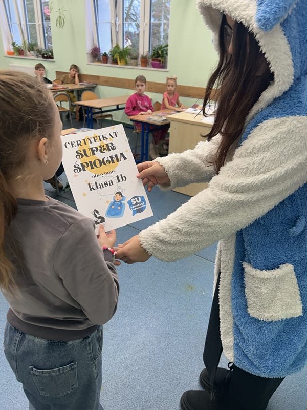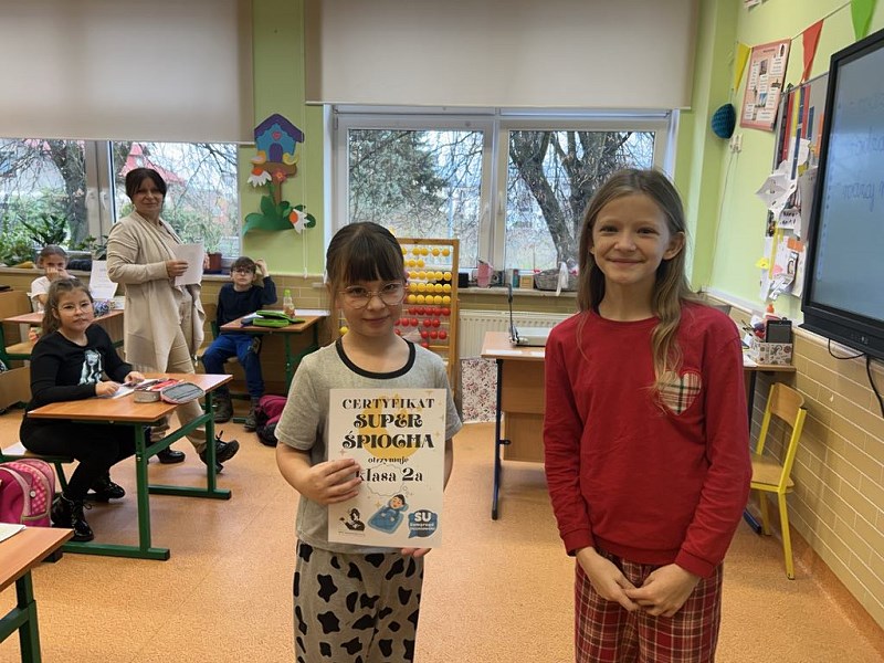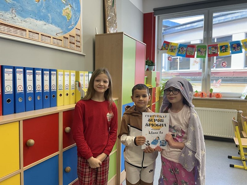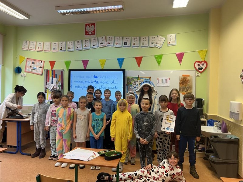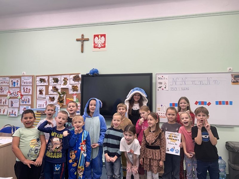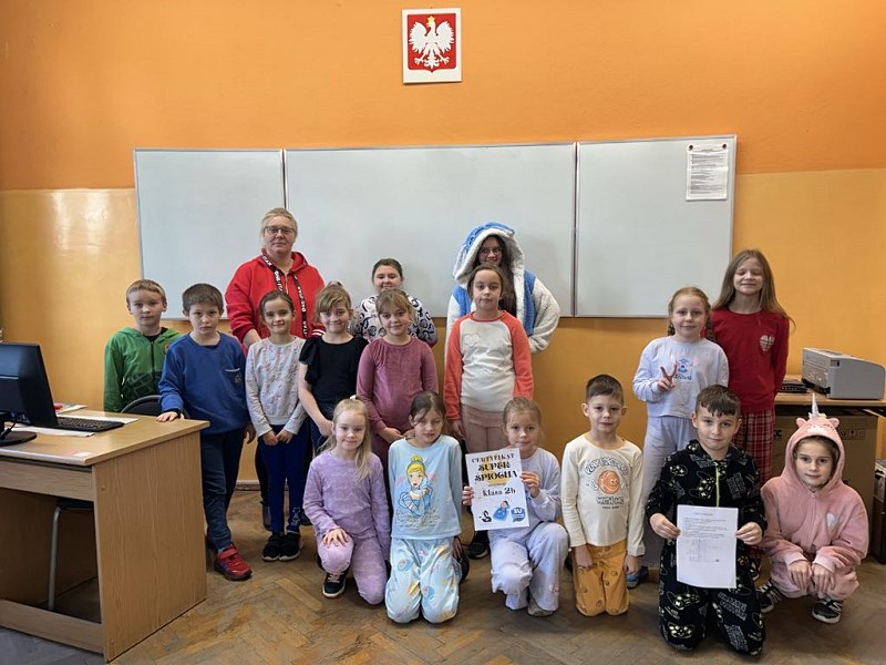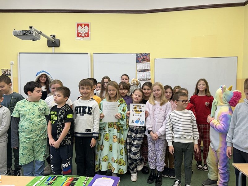 Dnia 15 listopada 2024 roku Samorząd Uczniowski zorganizował Dzień w Piżamie dla klas 1-3. W tym dniu dzieci miały przyjść do szkoły w swoich nocnych ciuszkach. Nie brakowało tam misiów, jednorożców, pand i wielu innych super piżamek. Przygotowaliśmy naszym młodszym kolegom i koleżankom zadanie specjalne w postaci krzyżówki. Uczniowie rozwiązywali ją wspólnie, a za poprawne odpowiedzi uzyskali Certyfikat SUPER ŚPIOCHA. Z każdą klasą zrobiliśmy sobie pamiątkowe zdjęcie.