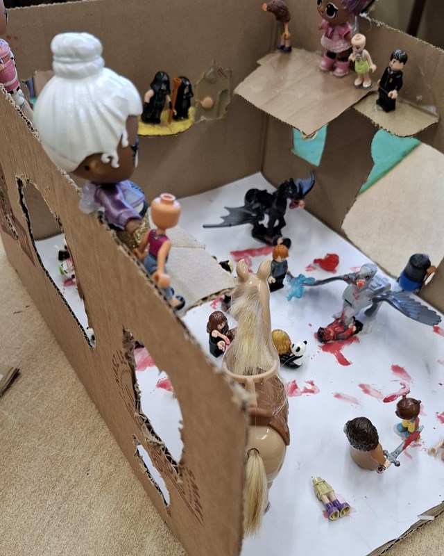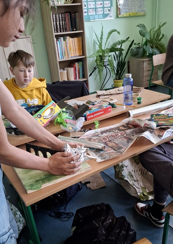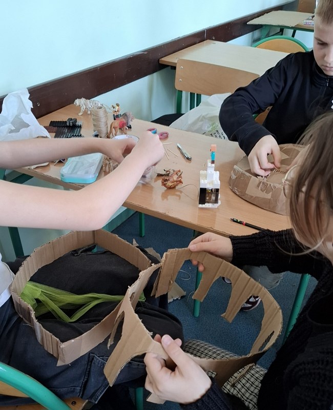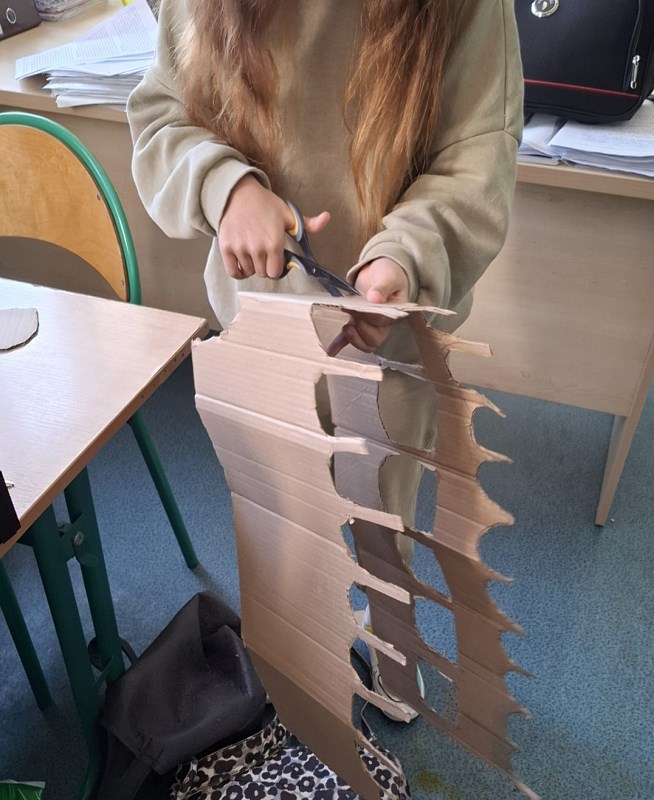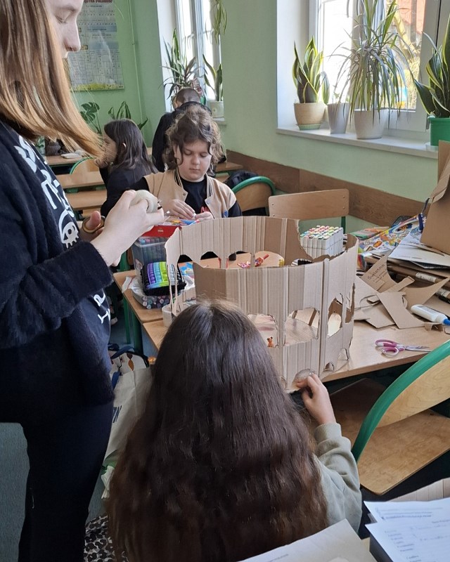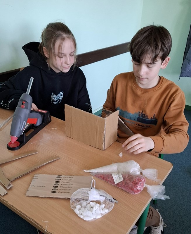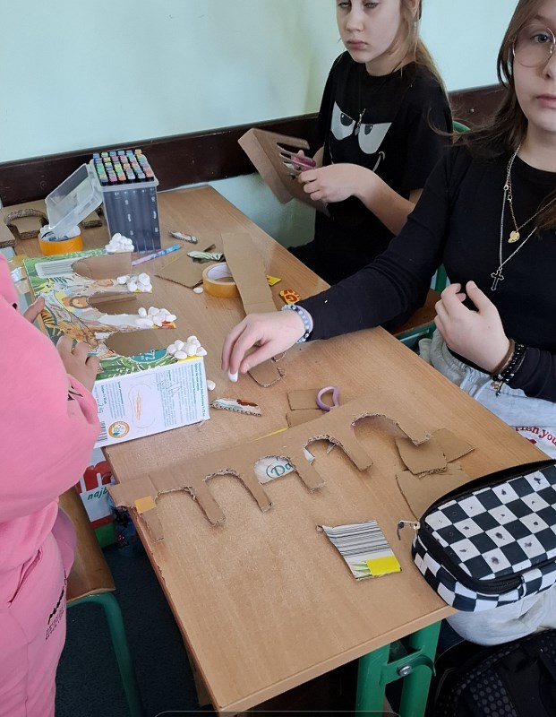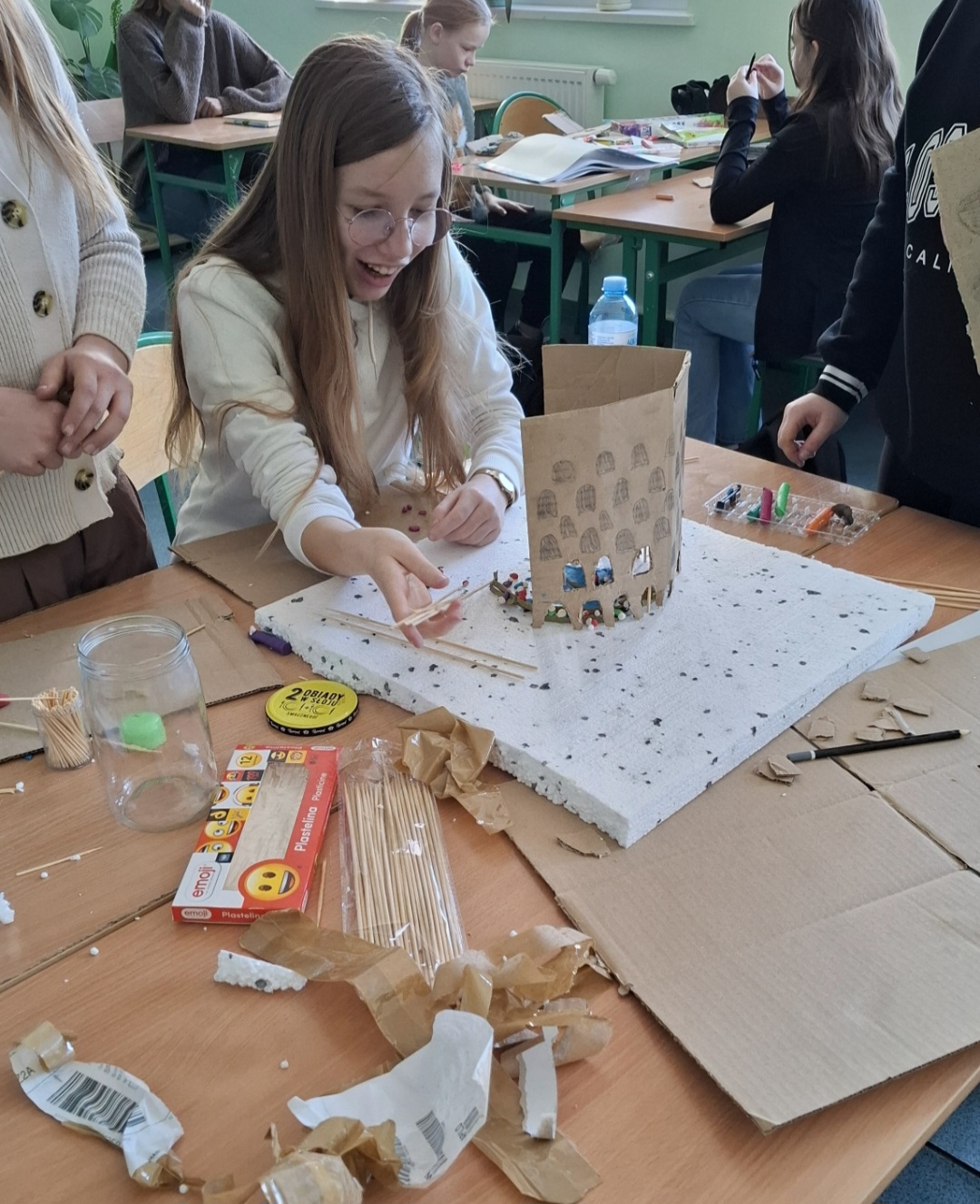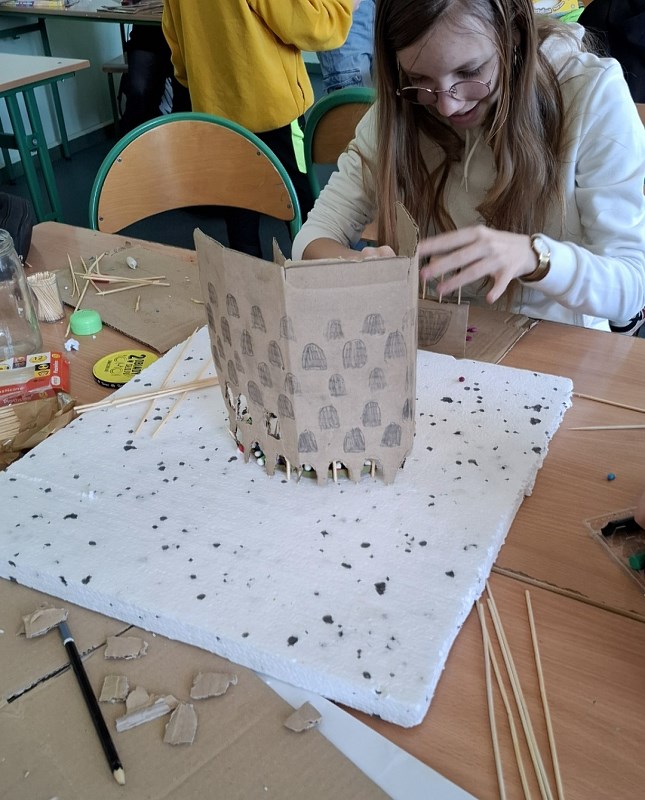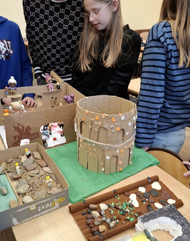 Zajęcia te były nie tylko okazją do zgłębienia wiedzy historycznej, ale także do rozwijania umiejętności manualnych, pracy zespołowej oraz wyobraźni przestrzennej. Uczniowie mieli szansę poeksperymentować z różnymi materiałami (tektura, plastelina, taśma klejąca) i przekonać się, że nauka o przeszłości może być pasjonującą przygodą.