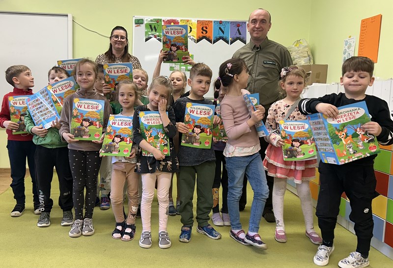 Na zakończenie spotkania dzieci otrzymały kolorowanki o tematyce leśnej, które będą im przypominać o tym wyjątkowym dniu.