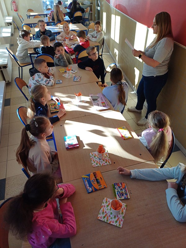 W ramach innowacji pedagogicznej " Przerwa na relacje- śniadania świetlicowe", nasza świetlica gościła klasę drugą z okazji Dnia Marchewki. Dzieci pięknie odpowiadały na zagadki, zachwyciły swoją wiedzą na temat znajomości warzyw, owoców i witamin. Powstały piękne obrazki oraz każdy miał okazję schrupać słodką marchewkę w ramach drugiego śniadania.
