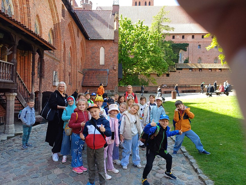 Drugi dzień wycieczki to Malbork. Widok największego na świecie zamku gotyckiego wybudowanego z cegieł, zrobił olbrzymie wrażenie na każdym z nas. Panowie przewodnicy oprowadzili nas po części Przedzamcza, dziedzińcu Zamku Średniego, komnatach zamku, po jego korytarzach, salach z pięknymi eksponatami broni, biżuterii, dawnej kuchni, kościele i podziemiach.