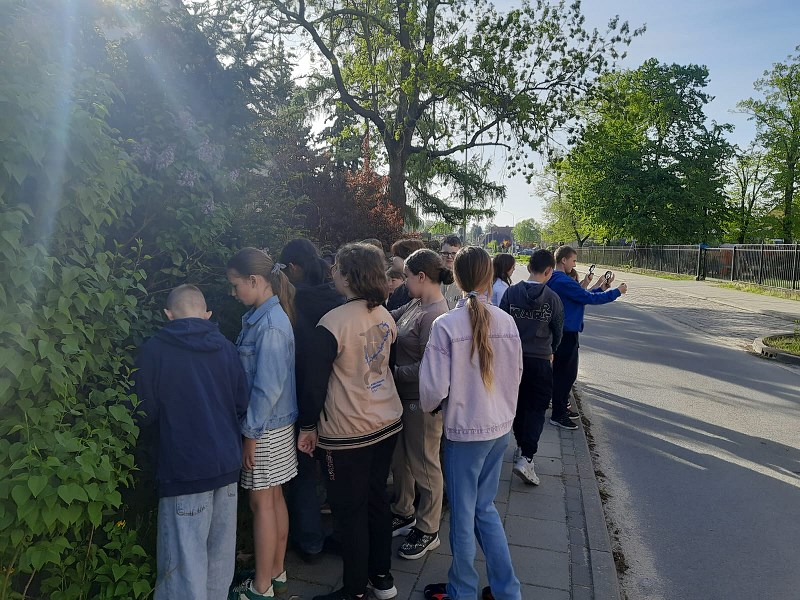 Najstarsza młodzież naszej szkoły przy pomocy lup pozyskanych w ramach projektu "Laboratoria przyszłości" obserwowała porosty występujące na drzewach, a następnie oceniała stan powietrza przy pomocy skali porostowej. Oglądała również rośliny zielne, liście i korę drzew.