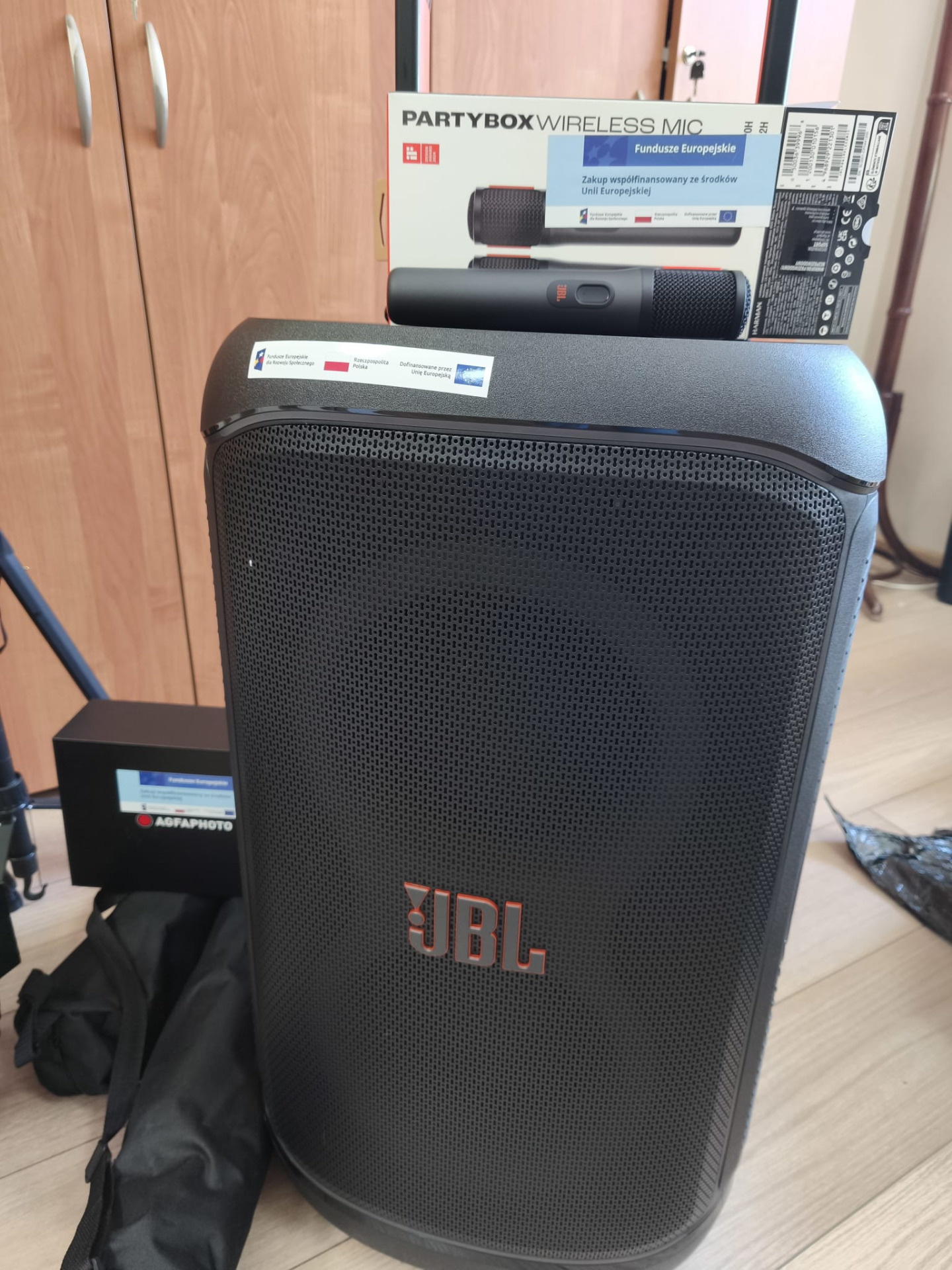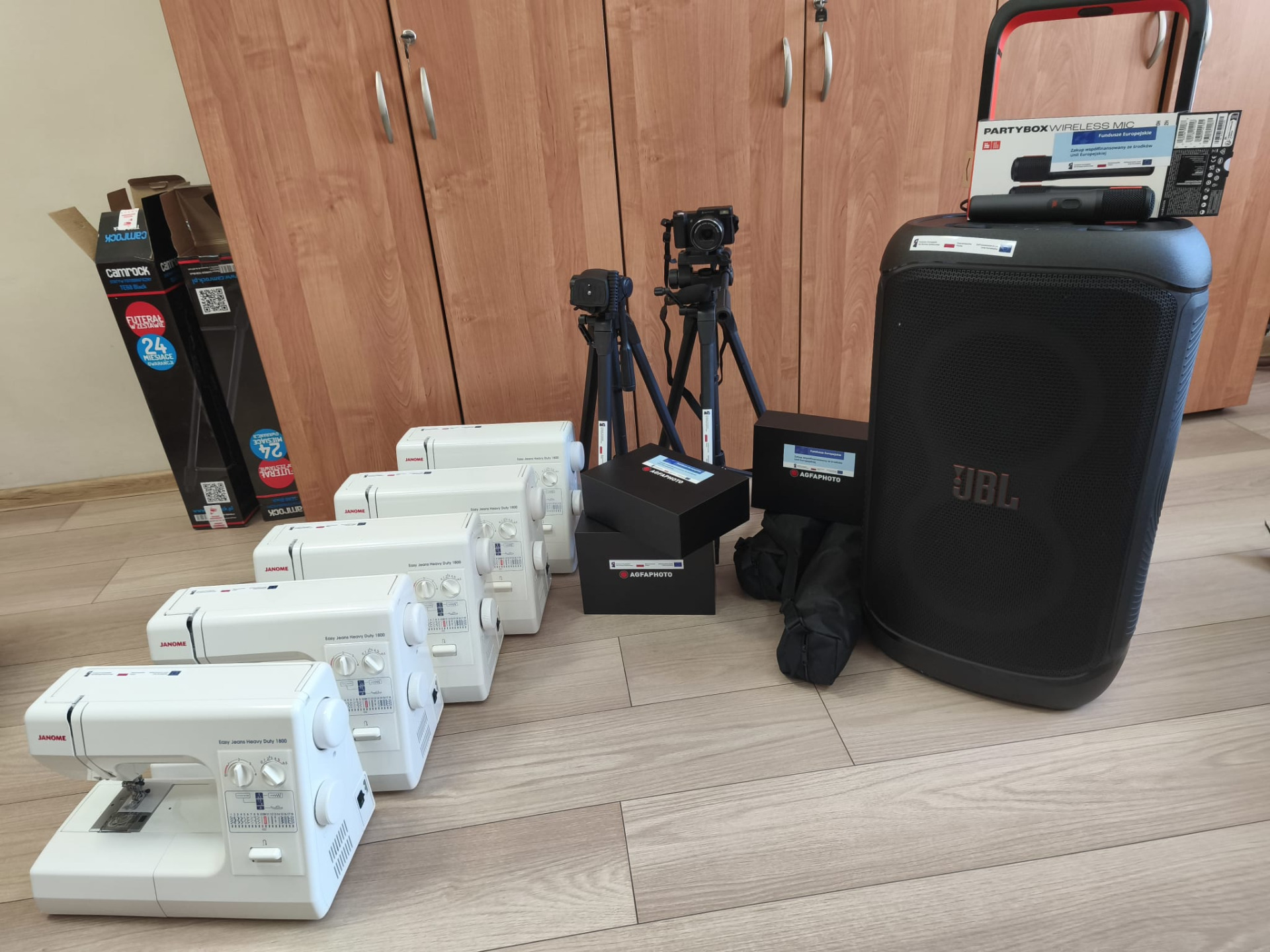W ramach projektu: Warsztaty dziennikarsko – teatralne pt. „Dziennikarskim okiem o sztuce teatralnej i nie tylko” współfinansowanego przez Europejski Fundusz Społeczny Plus, oprócz tego, że prowadzone są zajęcia dziennikarskie, teatralne, fotograficzne i krawieckie, zakupione zostało niezbędne wyposażenie do przeprowadzenia wymienionych warsztatów, takie jak: aparaty z wbudowaną kamerą oraz mikrofonem, duży głośnik z łącznością bezprzewodową oraz mikrofonami, głośnik mobilny, mikrofony nagłowne z mikroportem czy też maszyny do szycia wraz z akcesoriami krawieckimi.
