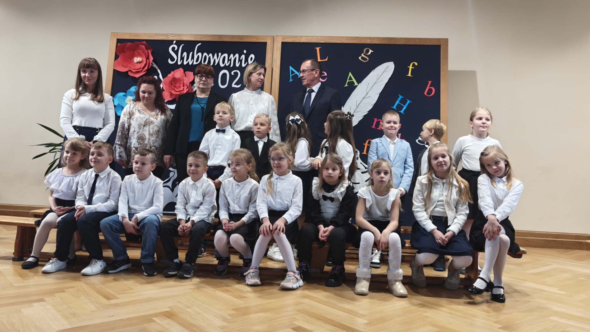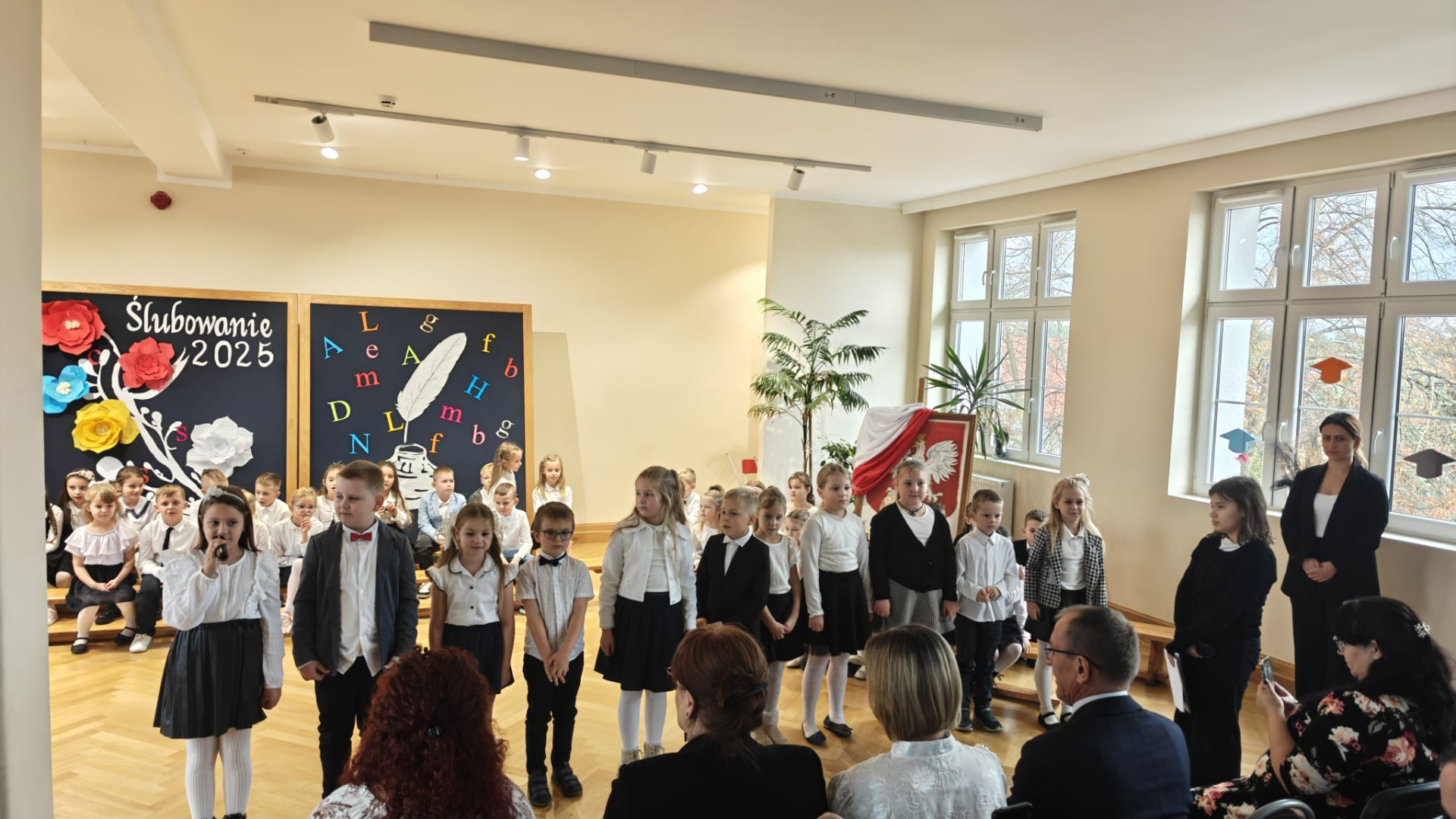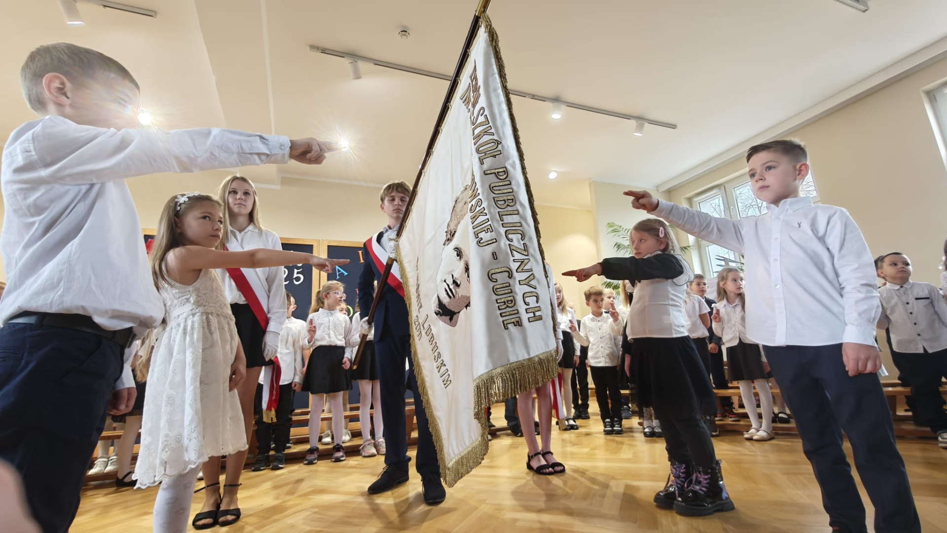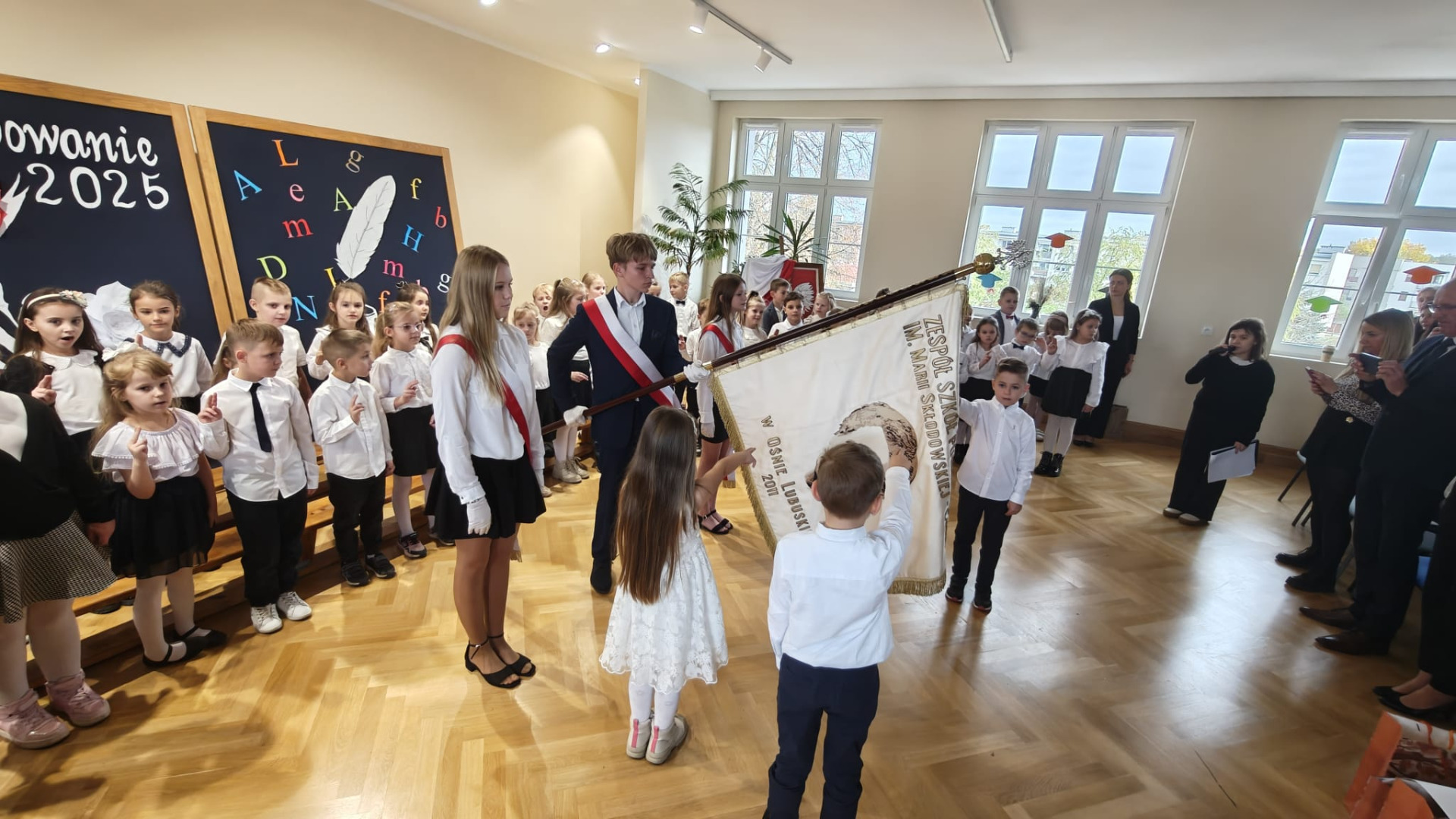 Wydarzenie rozpoczęło się od występów artystycznych. Uczniowie pięknie wyrecytowali wiersze i zaśpiewali piosenki. Wykazali się znajomością symboli narodowych, wiedzą, jak należy zachować się w drodze do szkoły czy jak spakować plecak. Swoją postawą udowodnili, iż są gotowi do złożenia uroczystego ślubowania. Obiecali być pilnymi i wzorowymi uczniami, dobrymi kolegami, prawymi Polakami i godnie reprezentować dobre imię naszej szkoły. Po złożeniu przyrzeczenia, pan dyrektor Kamilla Kwiręg dokonała aktu pasowania, który symbolizuje oficjalne przyjęcie w poczet uczniów Szkoły Podstawowej im. Marii Skłodowskiej-Curie w Ośnie Lubuskim.