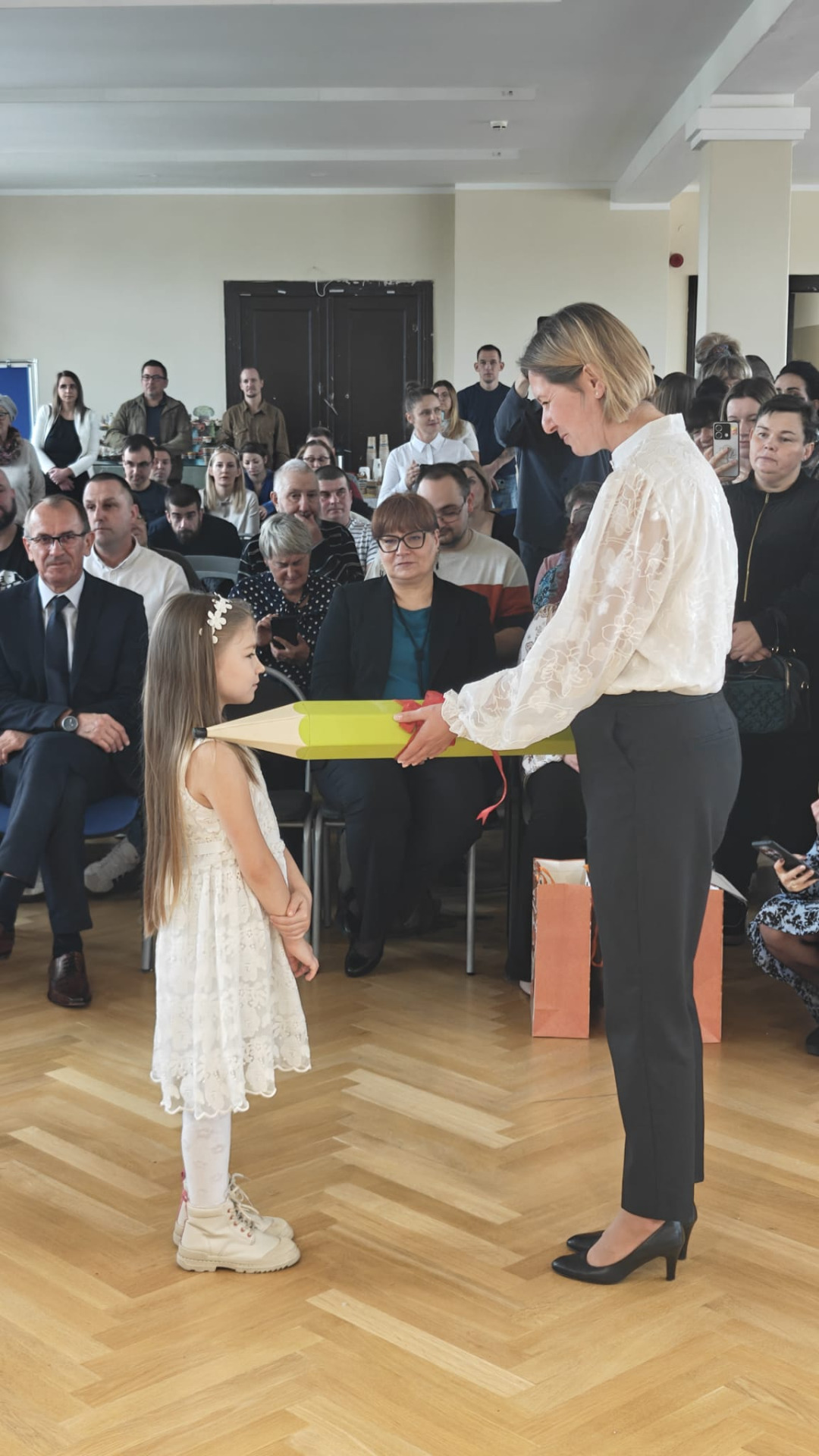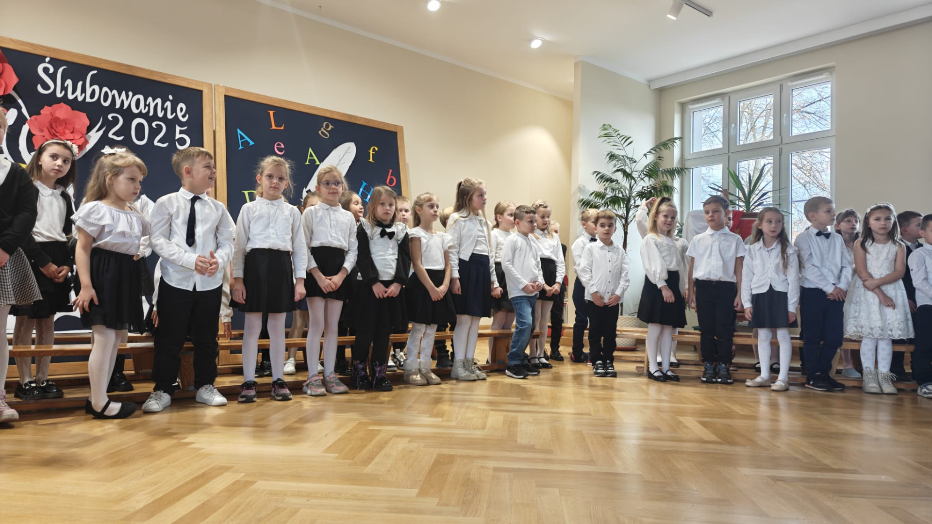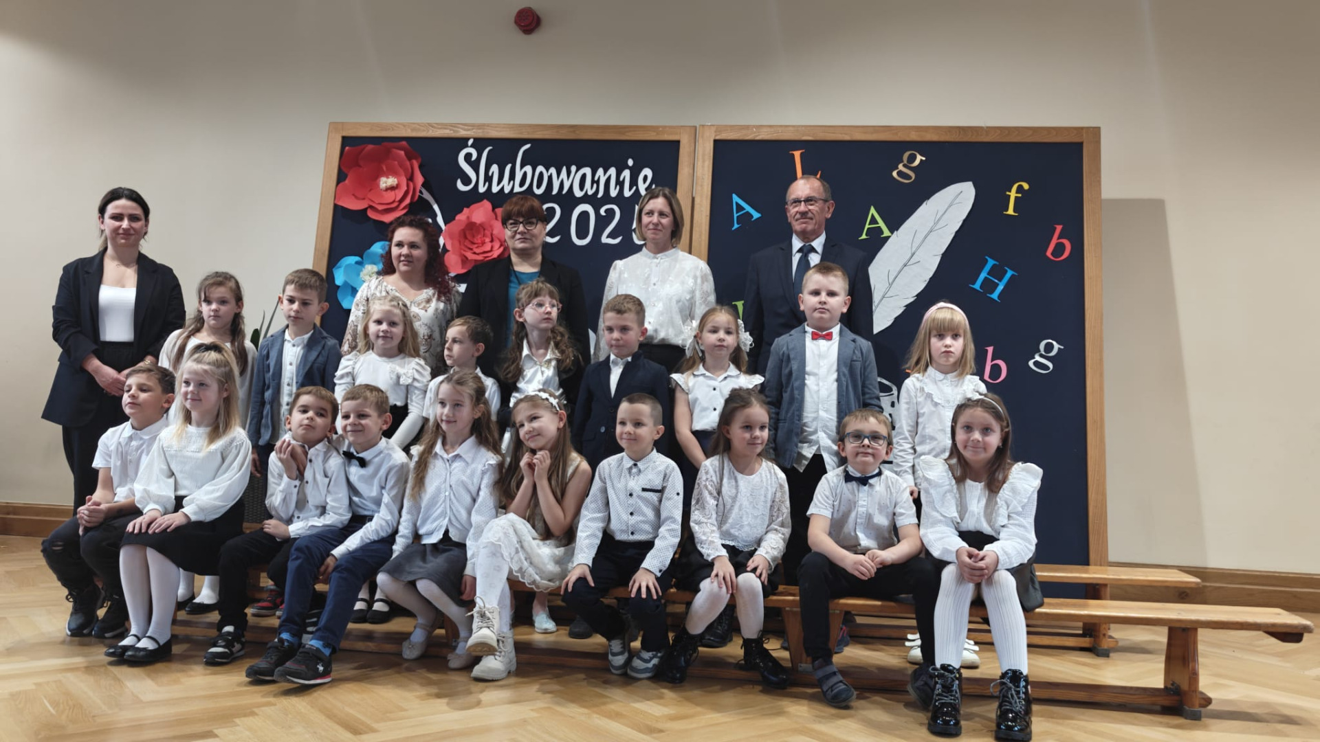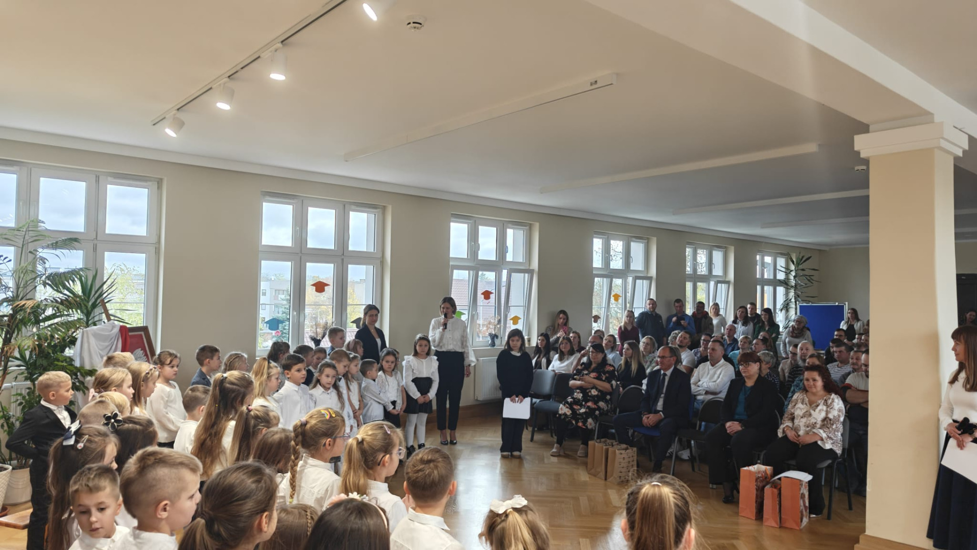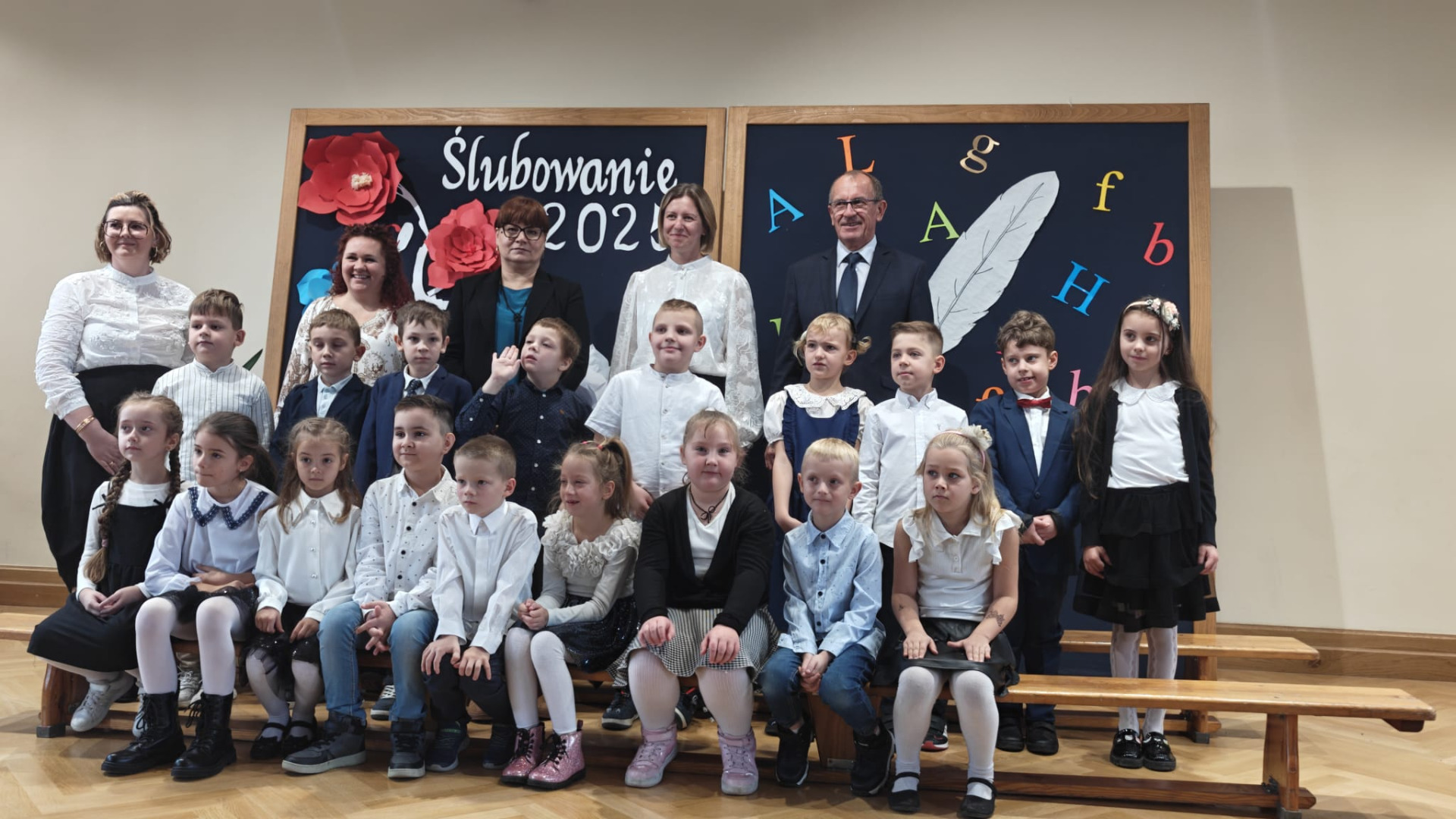 Wydarzenie rozpoczęło się od występów artystycznych. Uczniowie pięknie wyrecytowali wiersze i zaśpiewali piosenki. Wykazali się znajomością symboli narodowych, wiedzą, jak należy zachować się w drodze do szkoły czy jak spakować plecak. Swoją postawą udowodnili, iż są gotowi do złożenia uroczystego ślubowania. Obiecali być pilnymi i wzorowymi uczniami, dobrymi kolegami, prawymi Polakami i godnie reprezentować dobre imię naszej szkoły. Po złożeniu przyrzeczenia, pan dyrektor Kamilla Kwiręg dokonała aktu pasowania, który symbolizuje oficjalne przyjęcie w poczet uczniów Szkoły Podstawowej im. Marii Skłodowskiej-Curie w Ośnie Lubuskim.