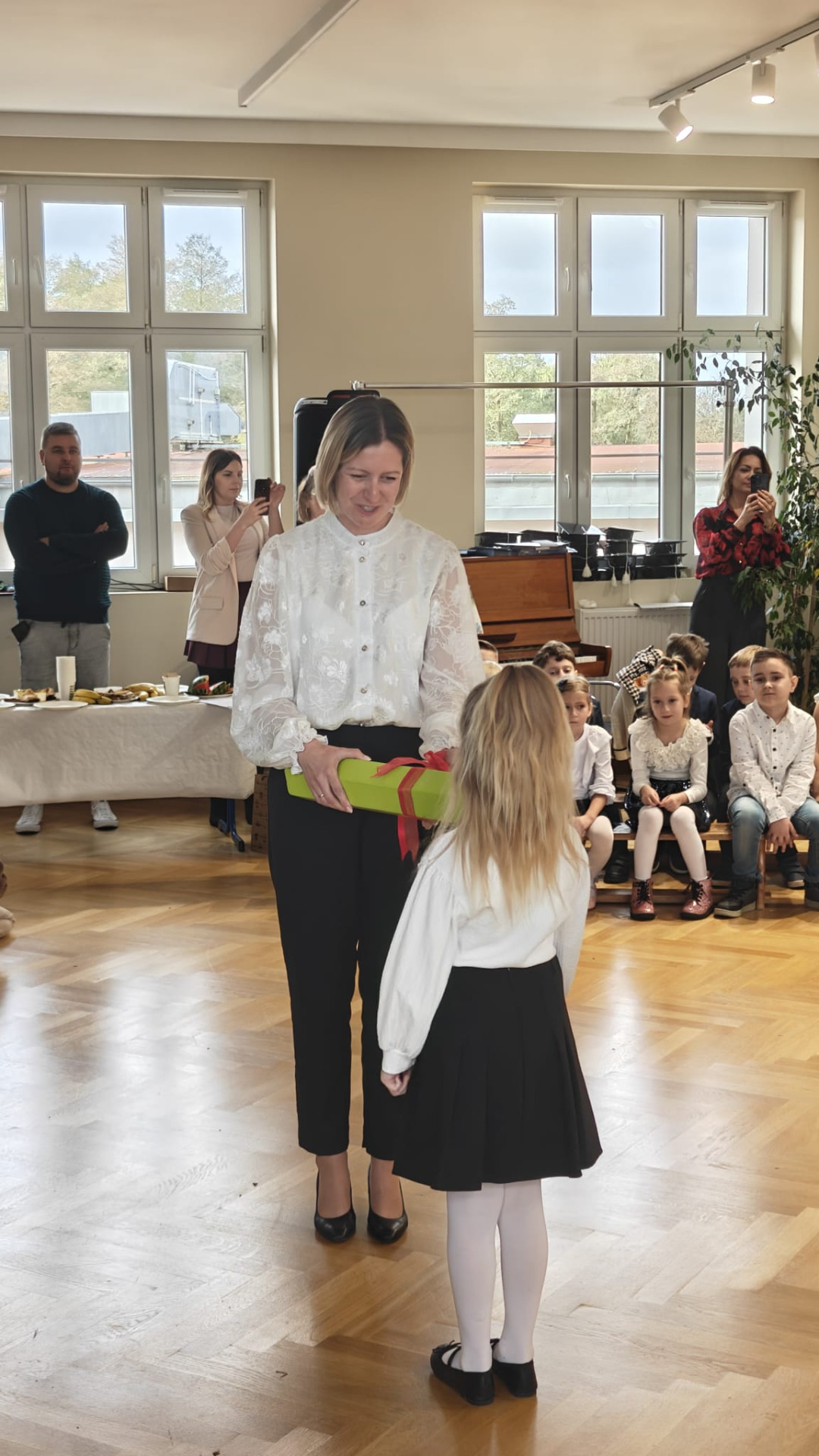 Każdy pierwszoklasista otrzymał pamiątkowy dyplom i upominki. Ten miły i pełen niezapomnianych wrażeń dzień zakończył się słodkim poczęstunkiem przygotowanym przez rodziców.