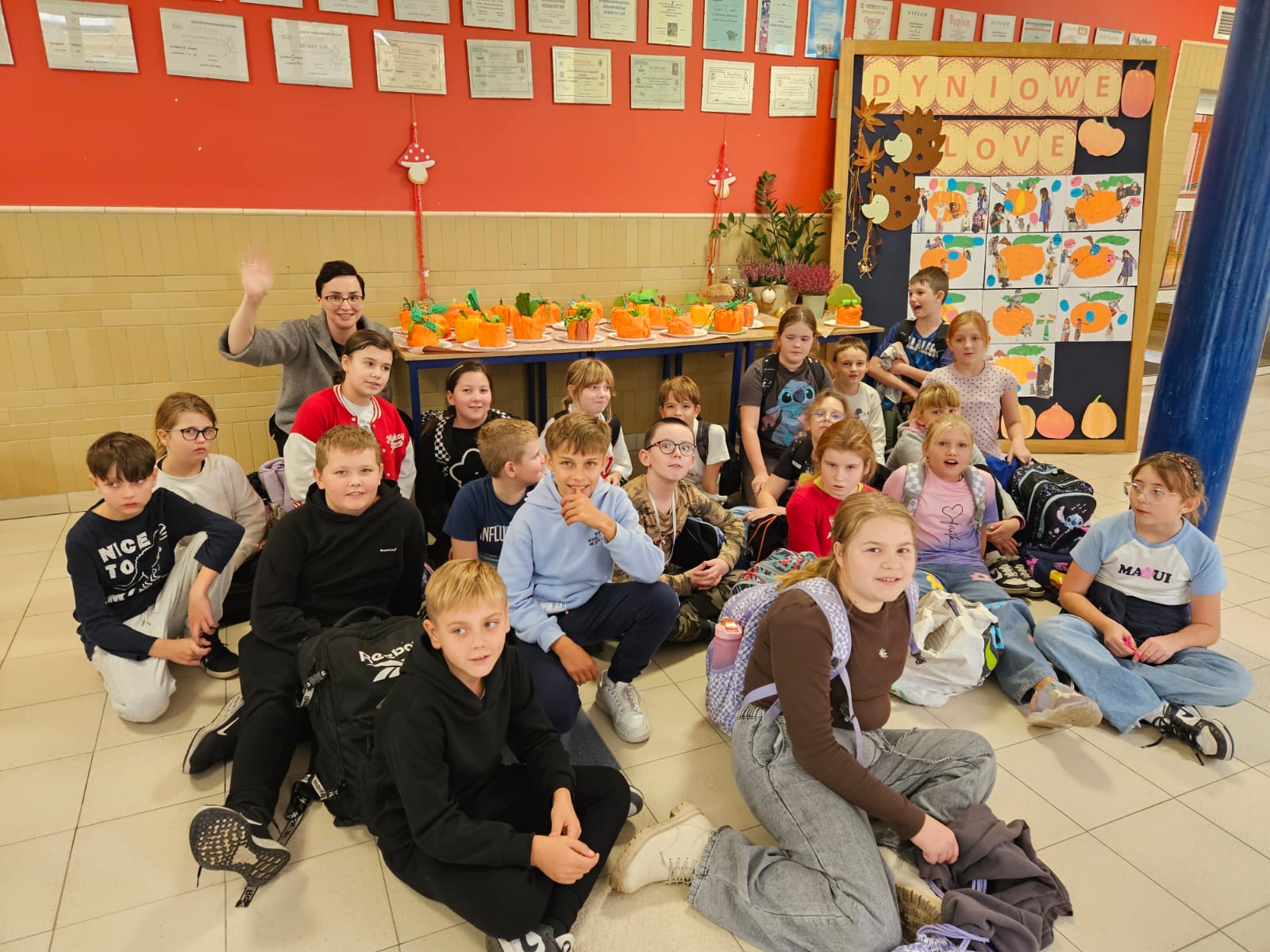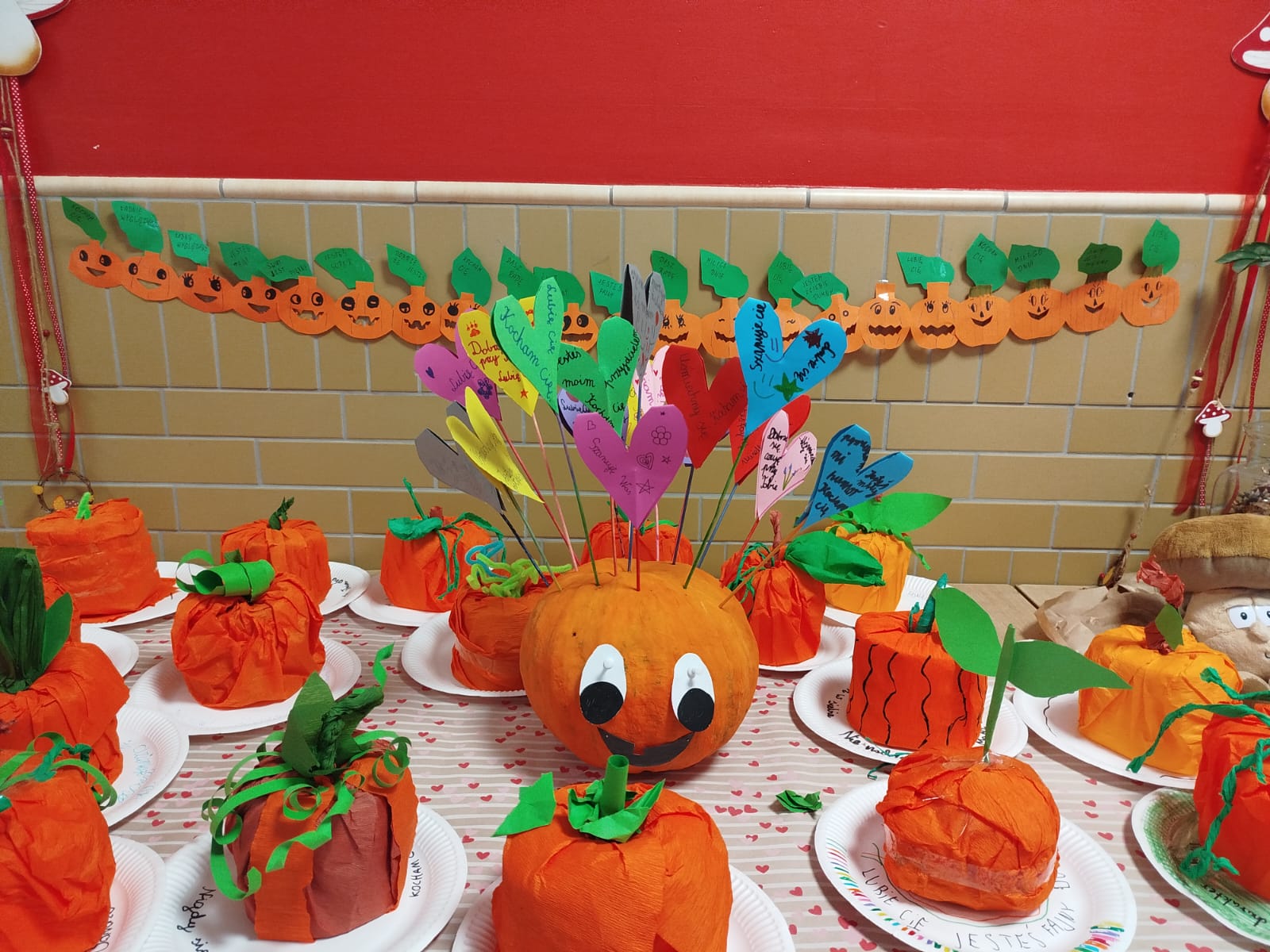 W październiku w ramach udziału w programie „Szkoła Dobrego Słowa” zespół pomocy psychologiczno - pedagogicznej we współpracy z wychowawcami przeprowadził zajęcia pod hasłem: Dyniowe Love. Uczniowie tworzyli piękne jesiennie ozdoby, ozdabiali dynie, girlandy, projektowali plakaty. Dynie, wykonane przez dzieci, miały wyjątkowy przekaz, bowiem uczyły dzieci pozytywnej komunikacji i słów, które są wspierające, budujące i rozgrzewające nasze serca. Dzieci usłyszały piękną bajkę Katarzyny Wiecheć pt. „ Gdzie poniosą mnie słowa?” zdobywając wiedzę o tym, że słowa mają ogromne znaczenie, że mamy wpływ na słowa, które wypowiadamy oraz które przyjmujemy i „wkładamy do swojego plecaka zabierając ze sobą w drogę”. Do akcji włączyły się również klasy 1-3 z wychowawcami, świetlica klas 2, klub mediacji klasy 2 i 3 oraz oddziały przedszkolne.