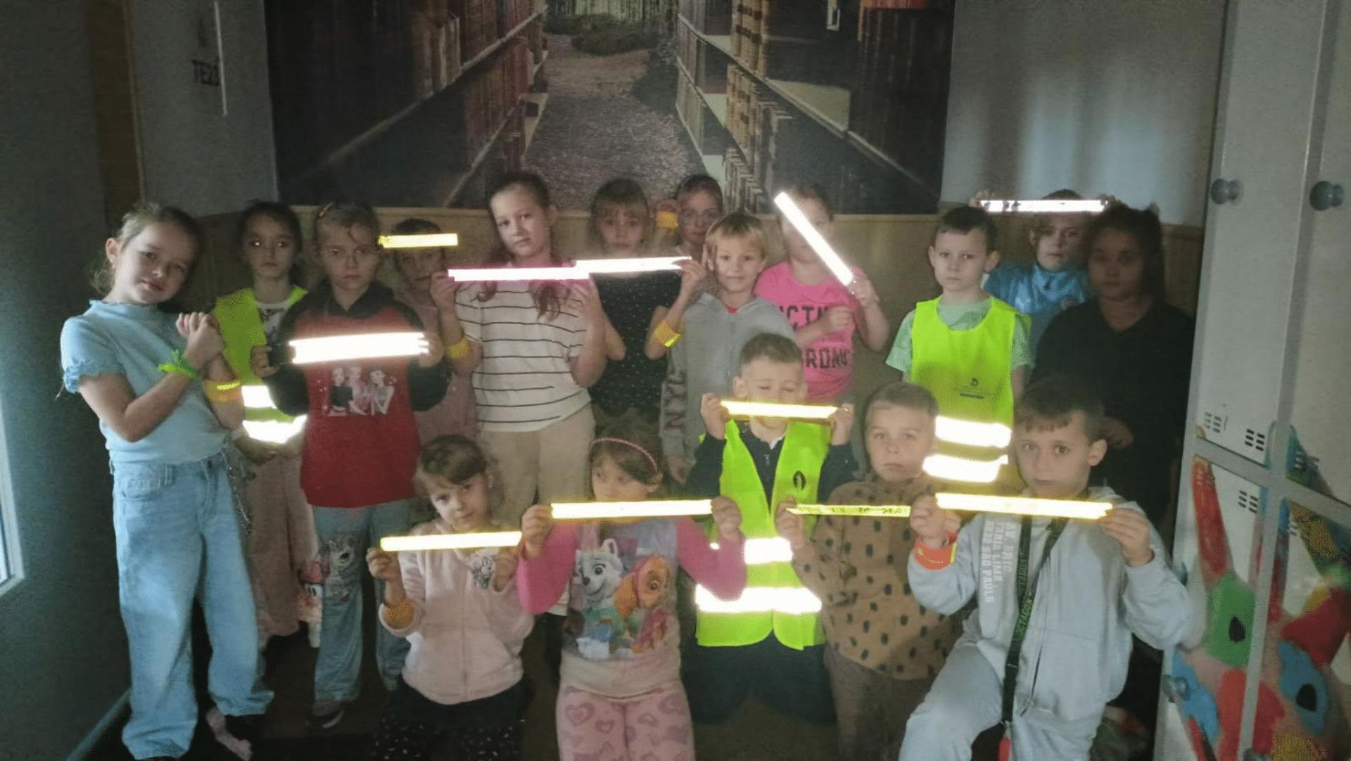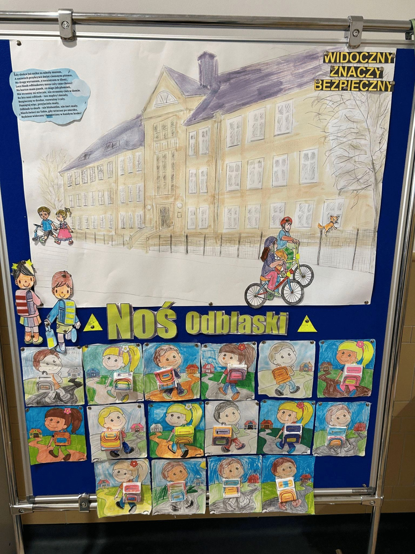Podczas zajęć świetlicowych uczniowie rozmawiali o zasadach bezpiecznego poruszania się w ruchu drogowym oraz tworzyli prace plastyczne zachęcające do noszenia odblasków. Efektem ich pracy był kolorowy kącik tematyczny „Widoczny znaczy bezpieczny – noś odblaski!”, który ozdobił szkolny korytarz i przypomina wszystkim o bezpieczeństwie pieszych i rowerzystów.