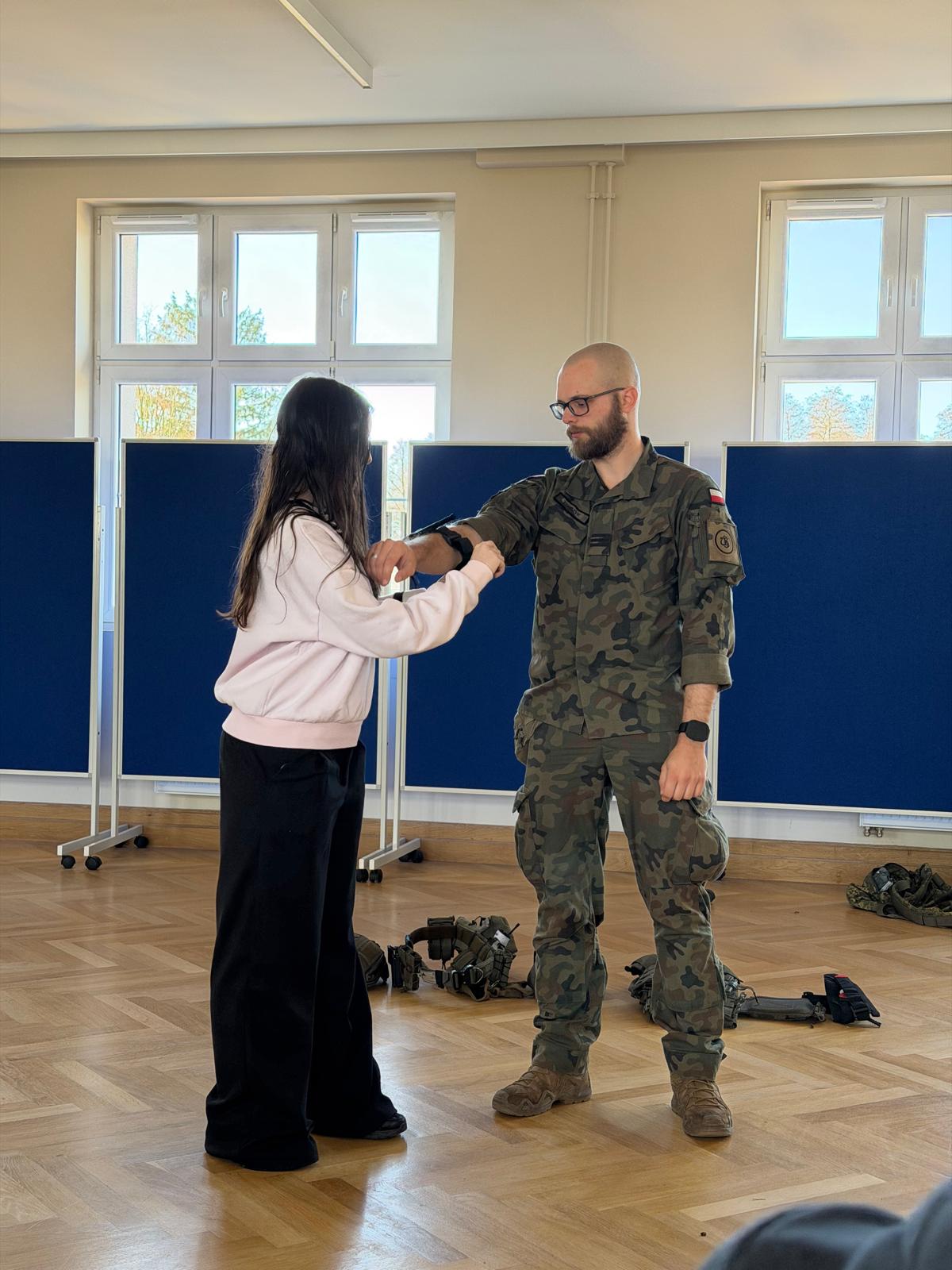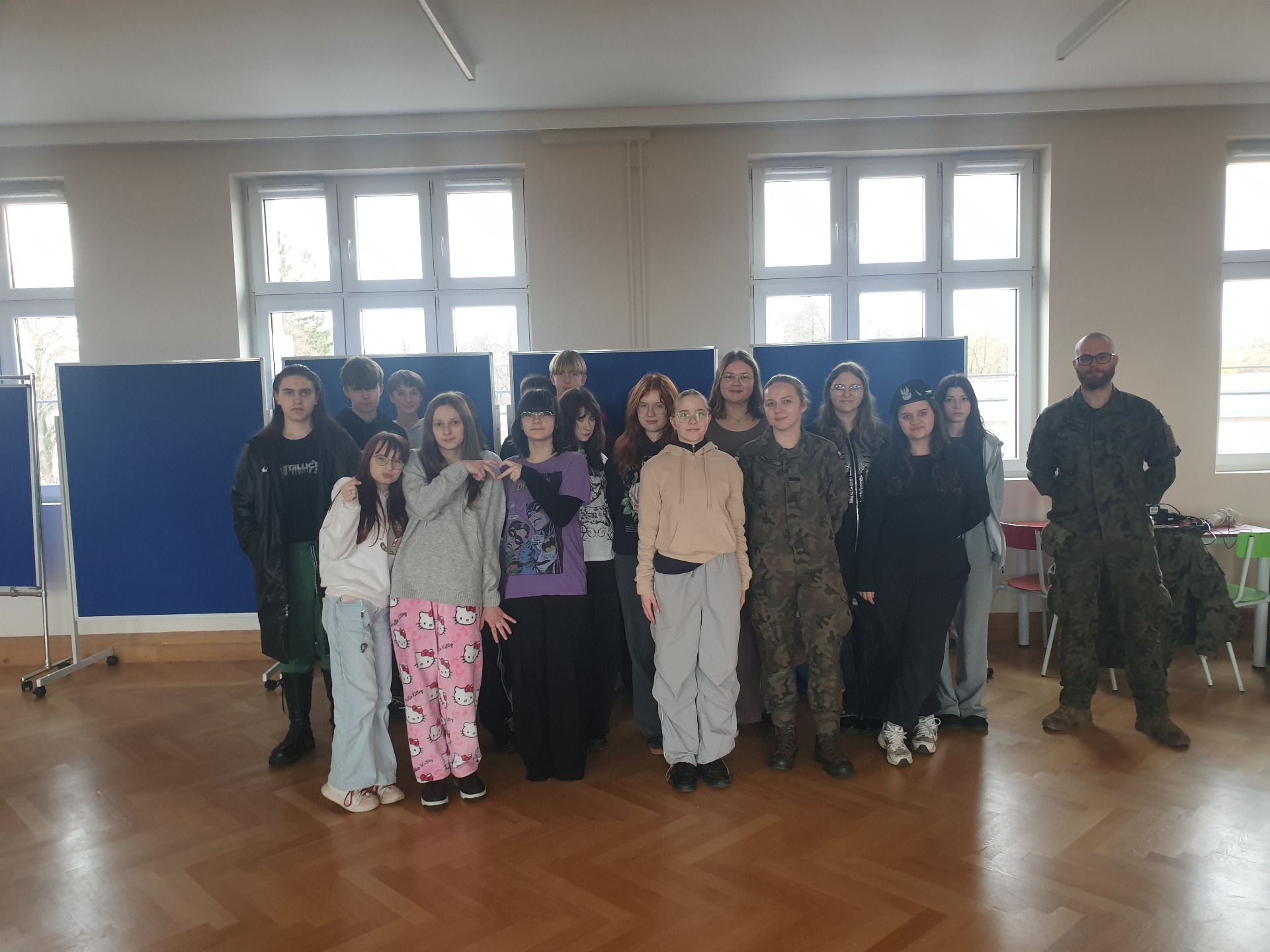 19 - 20 listopada uczniowie naszej szkoły mieli okazję uczestniczyć w zajęciach prowadzonych przez żołnierzy 7. Batalionu Strzelców Konnych Wielkopolskich. Spotkanie odbyło się w ramach ogólnopolskiego programu „Edukacja z wojskiem”, którego celem jest popularyzowanie wiedzy z obszaru zarządzania bezpieczeństwem, obrony cywilnej, cyberbezpieczeństwa, ratownictwa medycznego oraz zachowań kryzysowych.