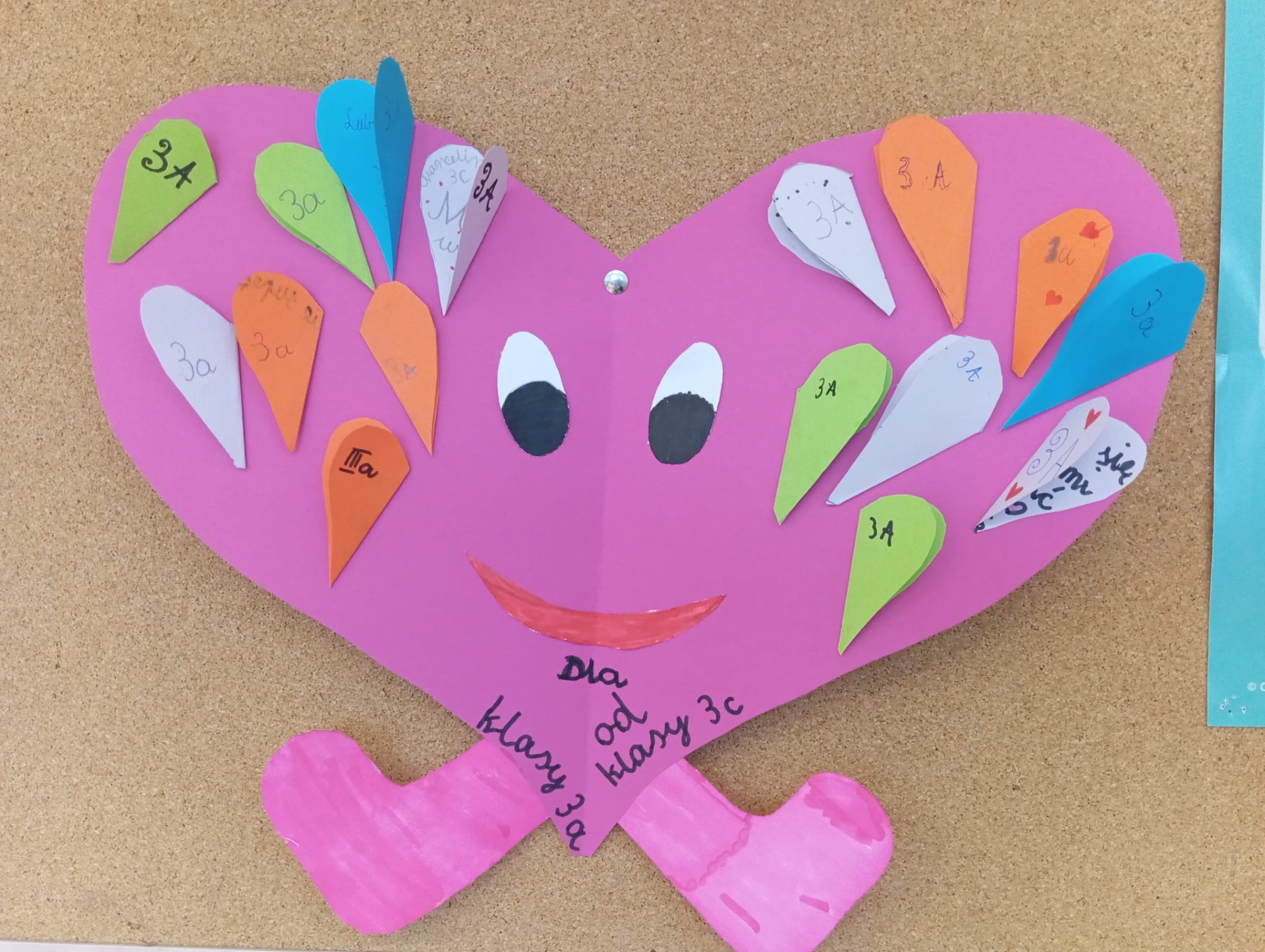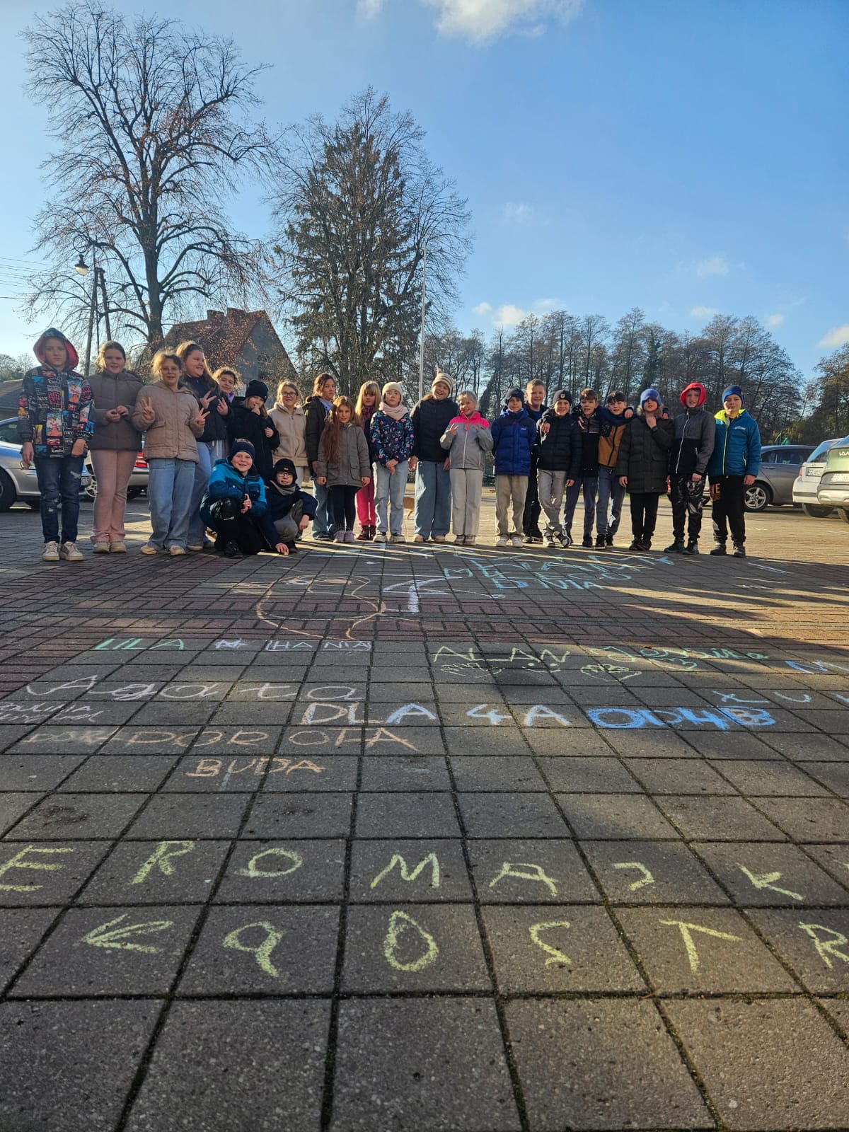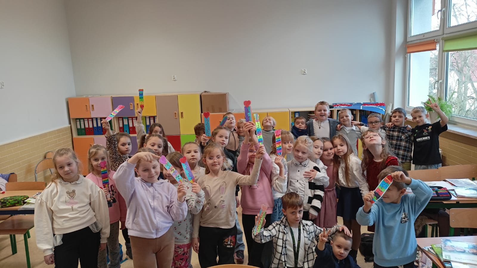 Uczniowie w świetlicy szkolnej stworzyli gazetkę ucząc się czym jest życzliwość, skąd się bierze, jak o nią zadbać i obdarować nią innych. Na godzinach wychowawczych uczniowie klasie równoległej przesyłali miłe słowo- pozdrowienie- mały drobiazg. Kreatywność wychowawców i uczniów była niesamowita. Na dziedzińcu szkoły kredą powstała galeria pięknych słów, ciepłych pozdrowień, kolorowych rysunków. Klasa ósma obdarowała klasę równoległą gniotkami antystresowymi, które sami wykonali. Oddział przedszkolny stworzył dla drugiej grupy dużą ramkę do robienia zdjęć. Myślę, że niejeden przedszkolak będzie chciał wykonać w niej pamiątkowe selfie.