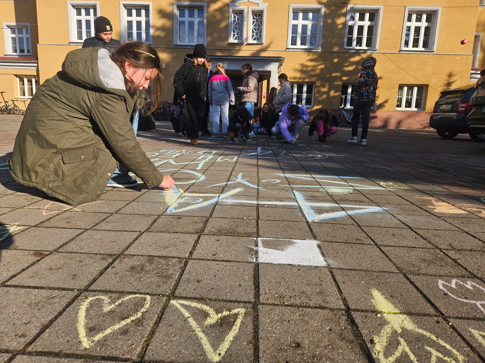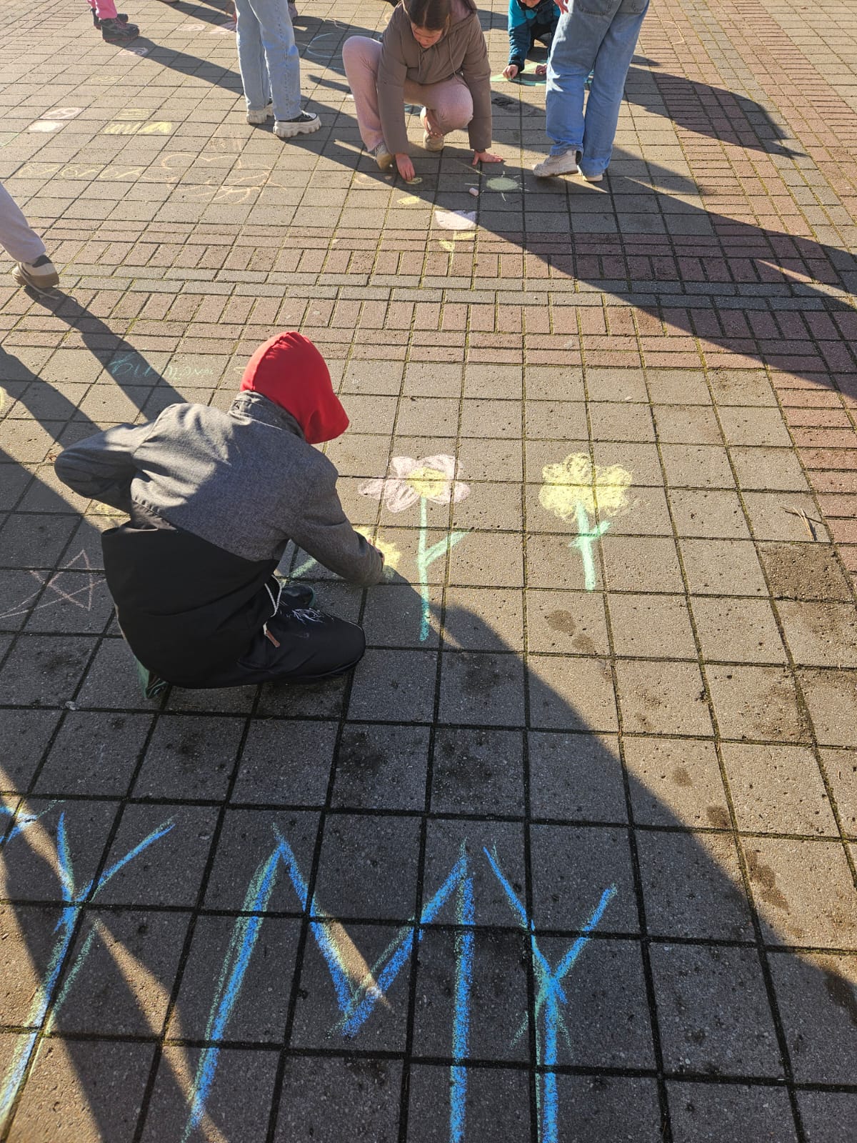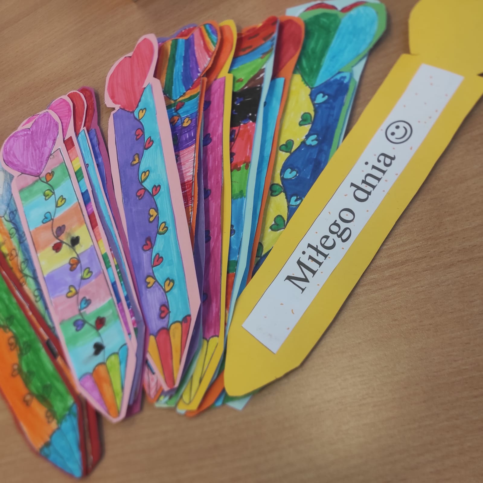 Uczniowie w świetlicy szkolnej stworzyli gazetkę ucząc się czym jest życzliwość, skąd się bierze, jak o nią zadbać i obdarować nią innych. Na godzinach wychowawczych uczniowie klasie równoległej przesyłali miłe słowo- pozdrowienie- mały drobiazg. Kreatywność wychowawców i uczniów była niesamowita. Na dziedzińcu szkoły kredą powstała galeria pięknych słów, ciepłych pozdrowień, kolorowych rysunków. Klasa ósma obdarowała klasę równoległą gniotkami antystresowymi, które sami wykonali. Oddział przedszkolny stworzył dla drugiej grupy dużą ramkę do robienia zdjęć. Myślę, że niejeden przedszkolak będzie chciał wykonać w niej pamiątkowe selfie.